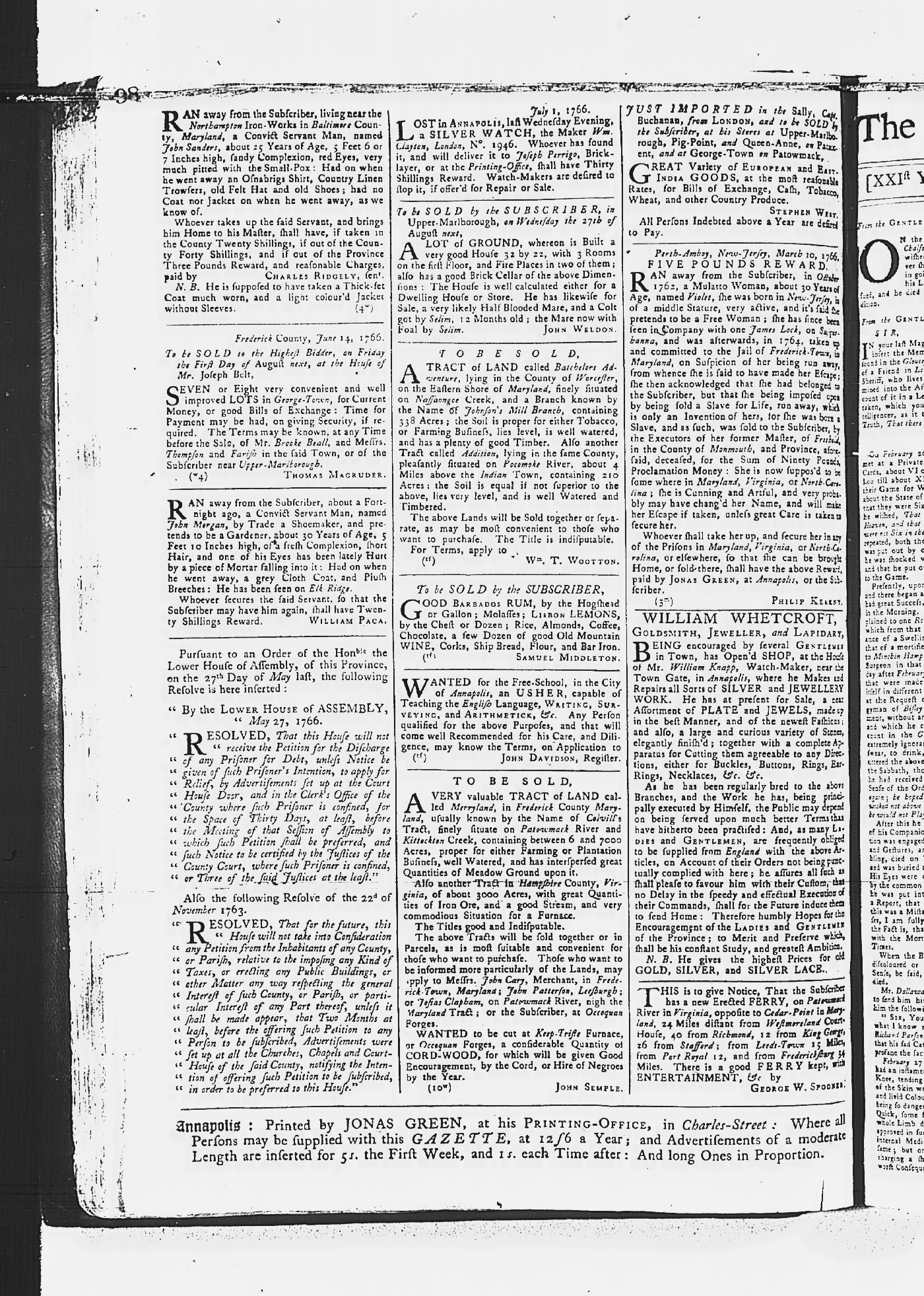 Maryland Gazette Collection MSA SC 2731 January 30, 1766 - December 26, 1771 M 1281 A Publication of the Archives of Maryland Online Image No: 107 Enlarge and print image (2M) |