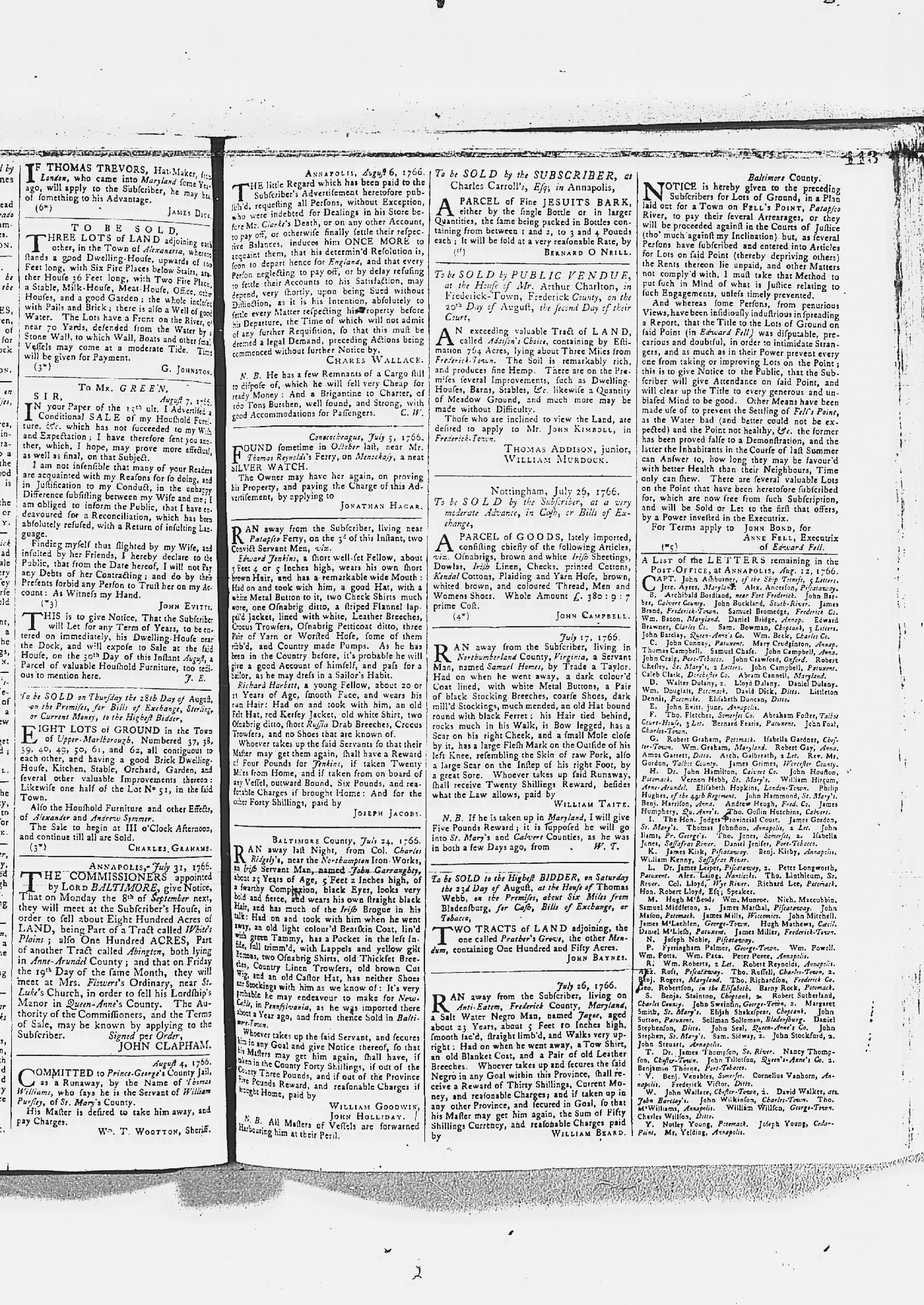 Maryland Gazette Collection MSA SC 2731 January 30, 1766 - December 26, 1771 M 1281 A Publication of the Archives of Maryland Online Image No: 128 Enlarge and print image (3M) |