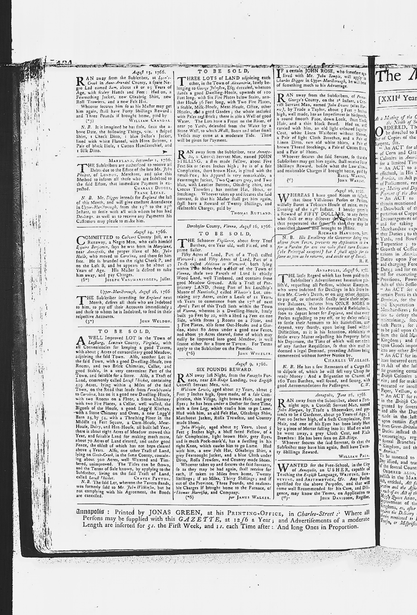 Maryland Gazette Collection MSA SC 2731 January 30, 1766 - December 26, 1771 M 1281 A Publication of the Archives of Maryland Online Image No: 151 Enlarge and print image (2M) |
