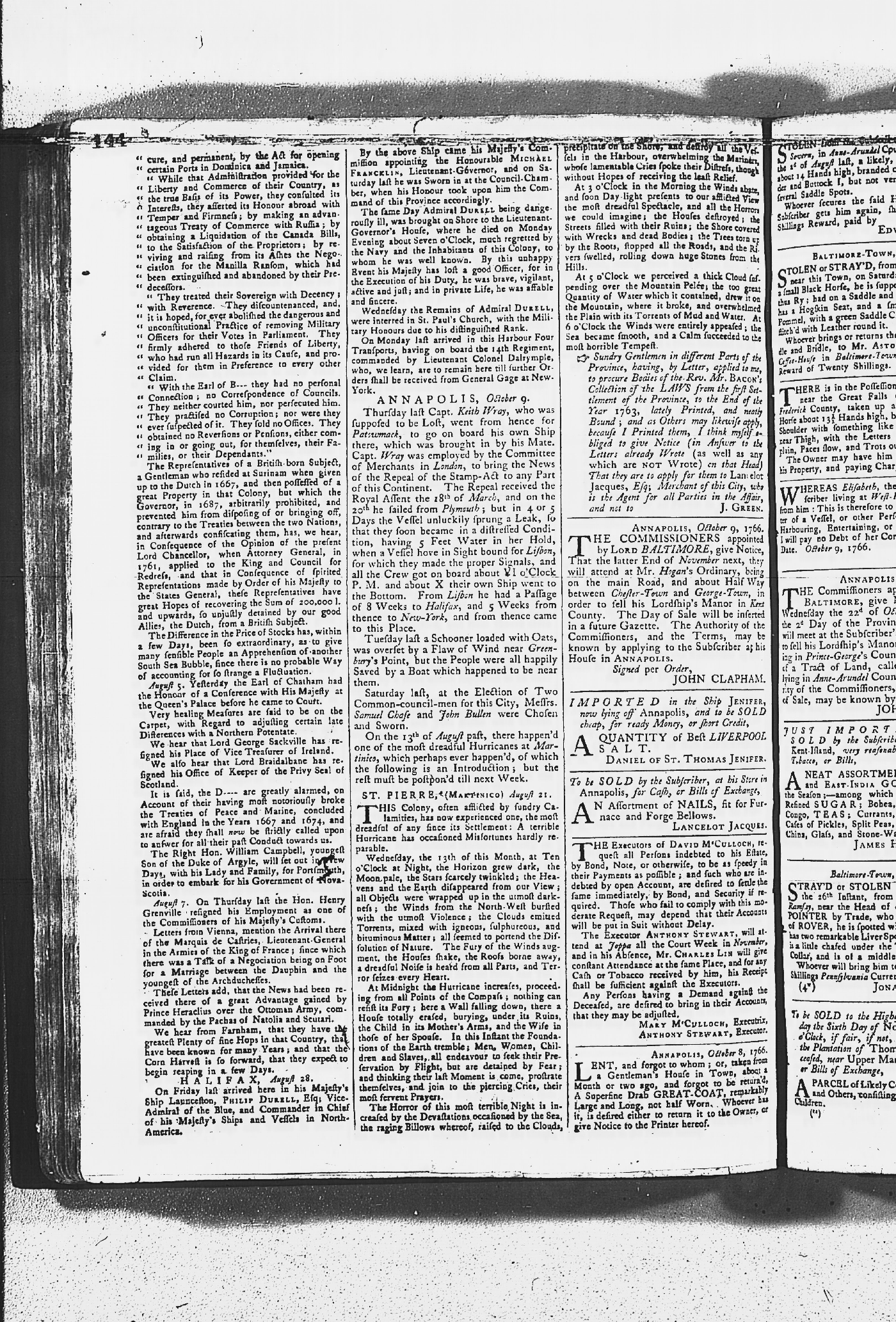 Maryland Gazette Collection MSA SC 2731 January 30, 1766 - December 26, 1771 M 1281 A Publication of the Archives of Maryland Online Image No: 163 Enlarge and print image (3M) |