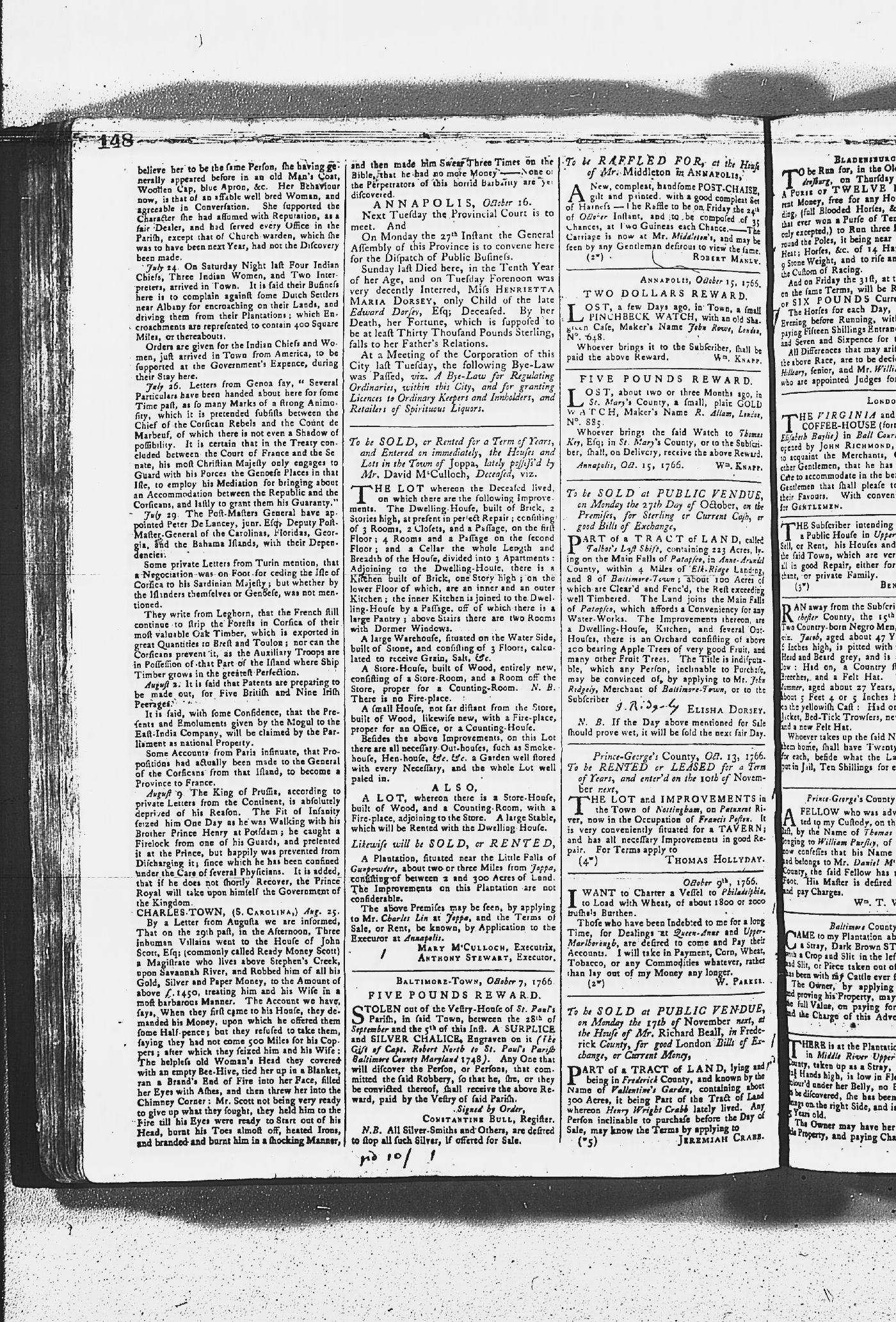Maryland Gazette Collection MSA SC 2731 January 30, 1766 - December 26, 1771 M 1281 A Publication of the Archives of Maryland Online Image No: 167 Enlarge and print image (3M) |