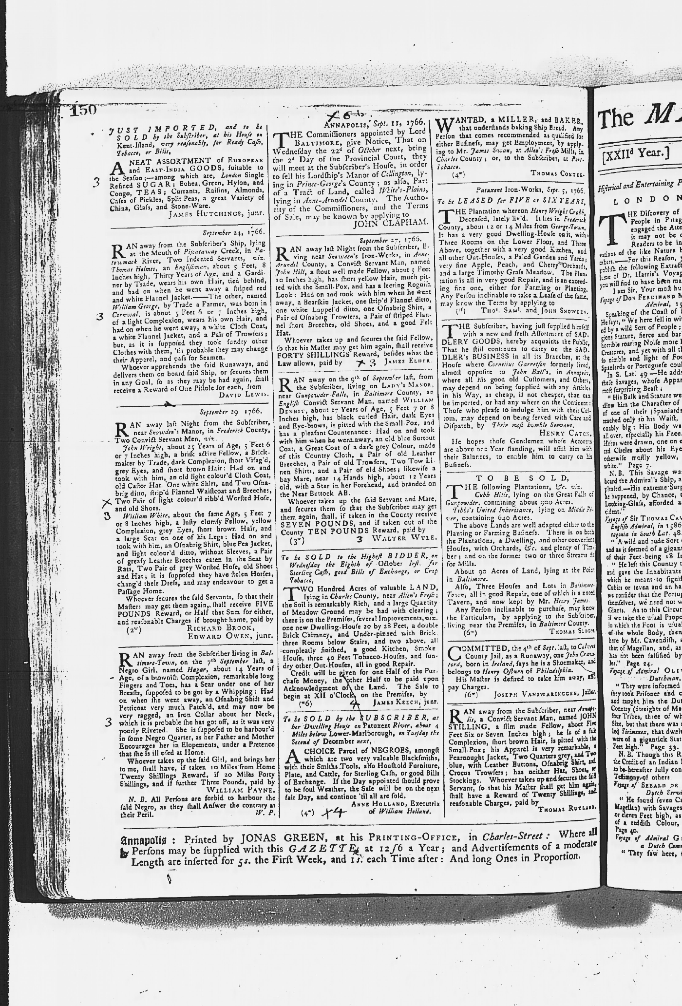 Maryland Gazette Collection MSA SC 2731 January 30, 1766 - December 26, 1771 M 1281 A Publication of the Archives of Maryland Online Image No: 171 Enlarge and print image (3M) |