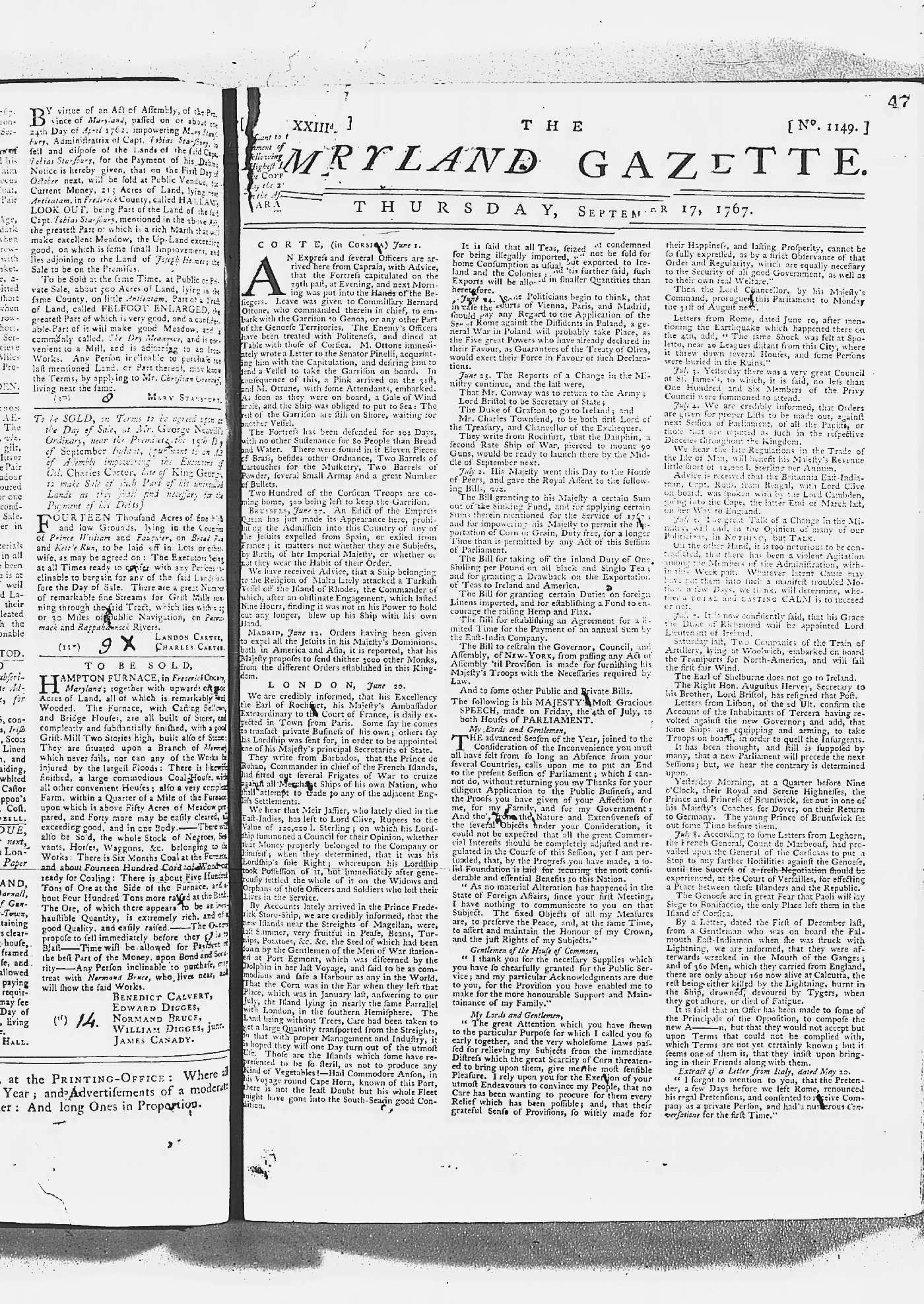 Maryland Gazette Collection MSA SC 2731 January 30, 1766 - December 26, 1771 M 1281 A Publication of the Archives of Maryland Online Image No: 400 Enlarge and print image (3M) |