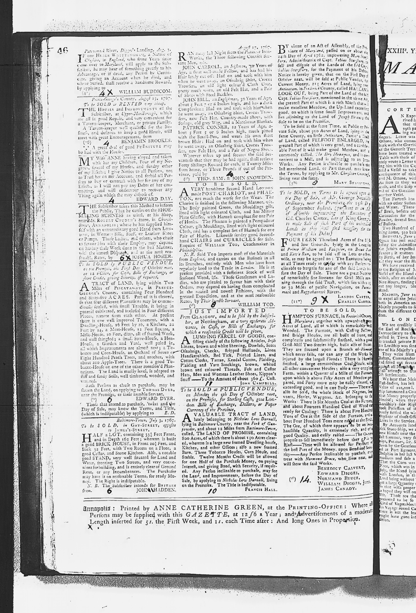 Maryland Gazette Collection MSA SC 2731 January 30, 1766 - December 26, 1771 M 1281 A Publication of the Archives of Maryland Online Image No: 401 Enlarge and print image (3M) |