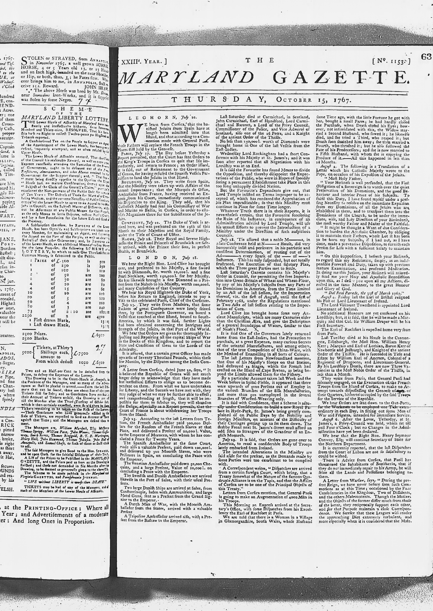 Maryland Gazette Collection MSA SC 2731 January 30, 1766 - December 26, 1771 M 1281 A Publication of the Archives of Maryland Online Image No: 420 Enlarge and print image (3M) |