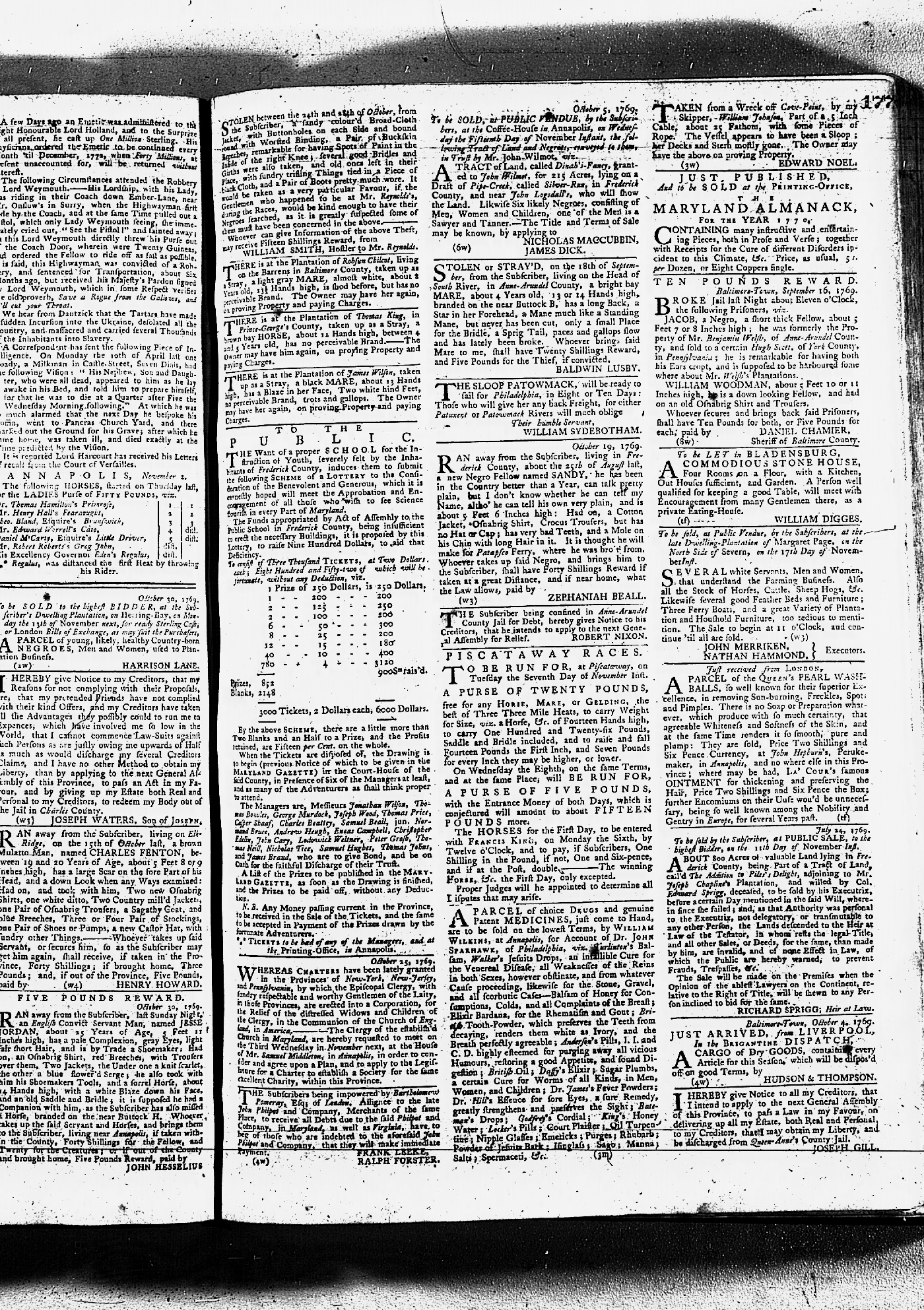 Maryland Gazette Collection MSA SC 2731 January 30, 1766 - December 26, 1771 M 1281 A Publication of the Archives of Maryland Online Image No: 908 Enlarge and print image (4M) |