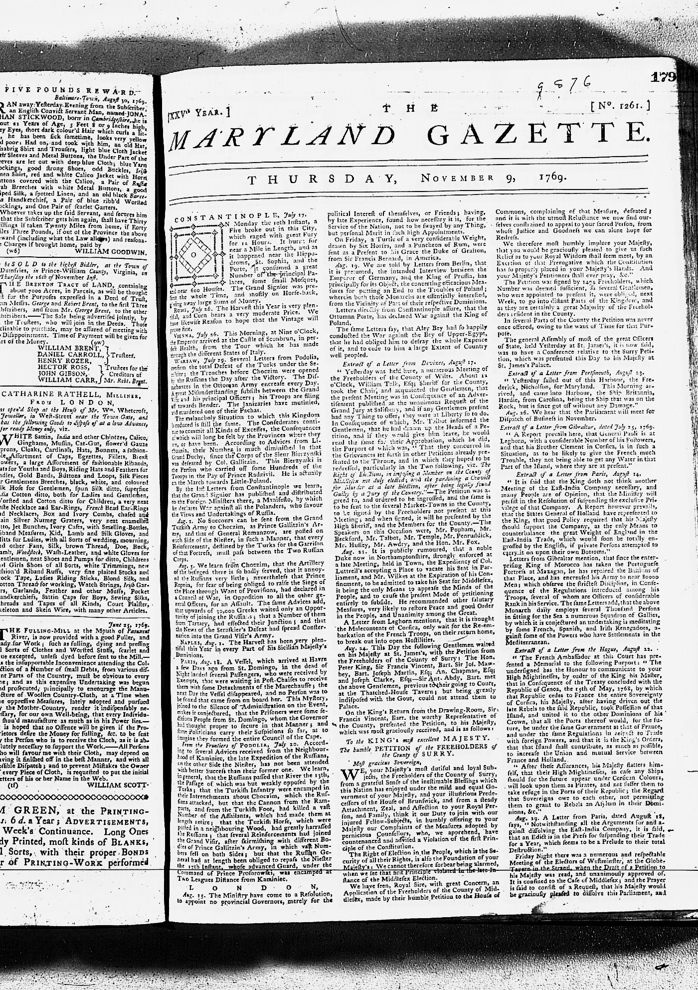 Maryland Gazette Collection MSA SC 2731 January 30, 1766 - December 26, 1771 M 1281 A Publication of the Archives of Maryland Online Image No: 910 Enlarge and print image (4M) |