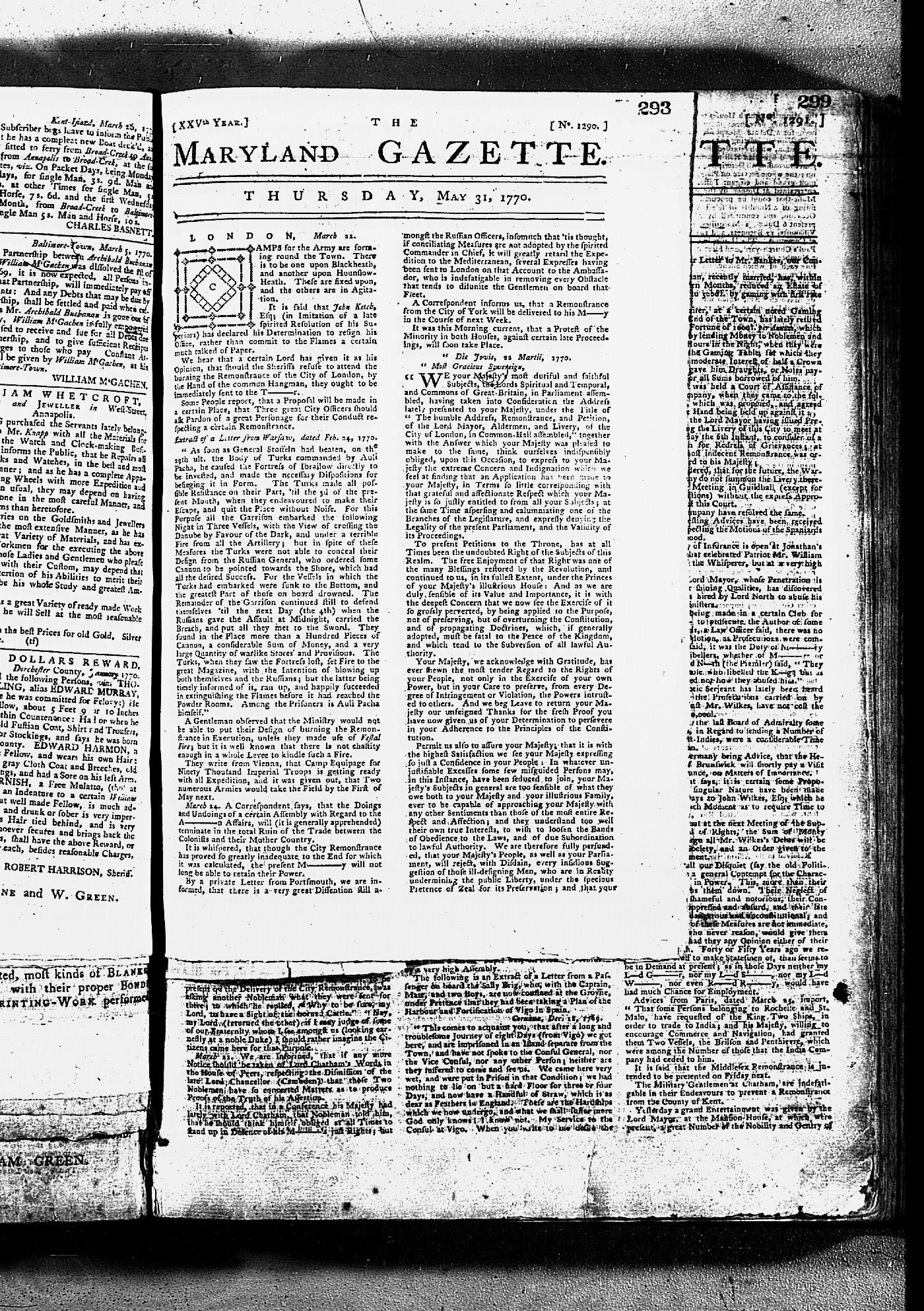 Maryland Gazette Collection MSA SC 2731 January 30, 1766 - December 26, 1771 M 1281 A Publication of the Archives of Maryland Online Image No: 1036 Enlarge and print image (4M) |