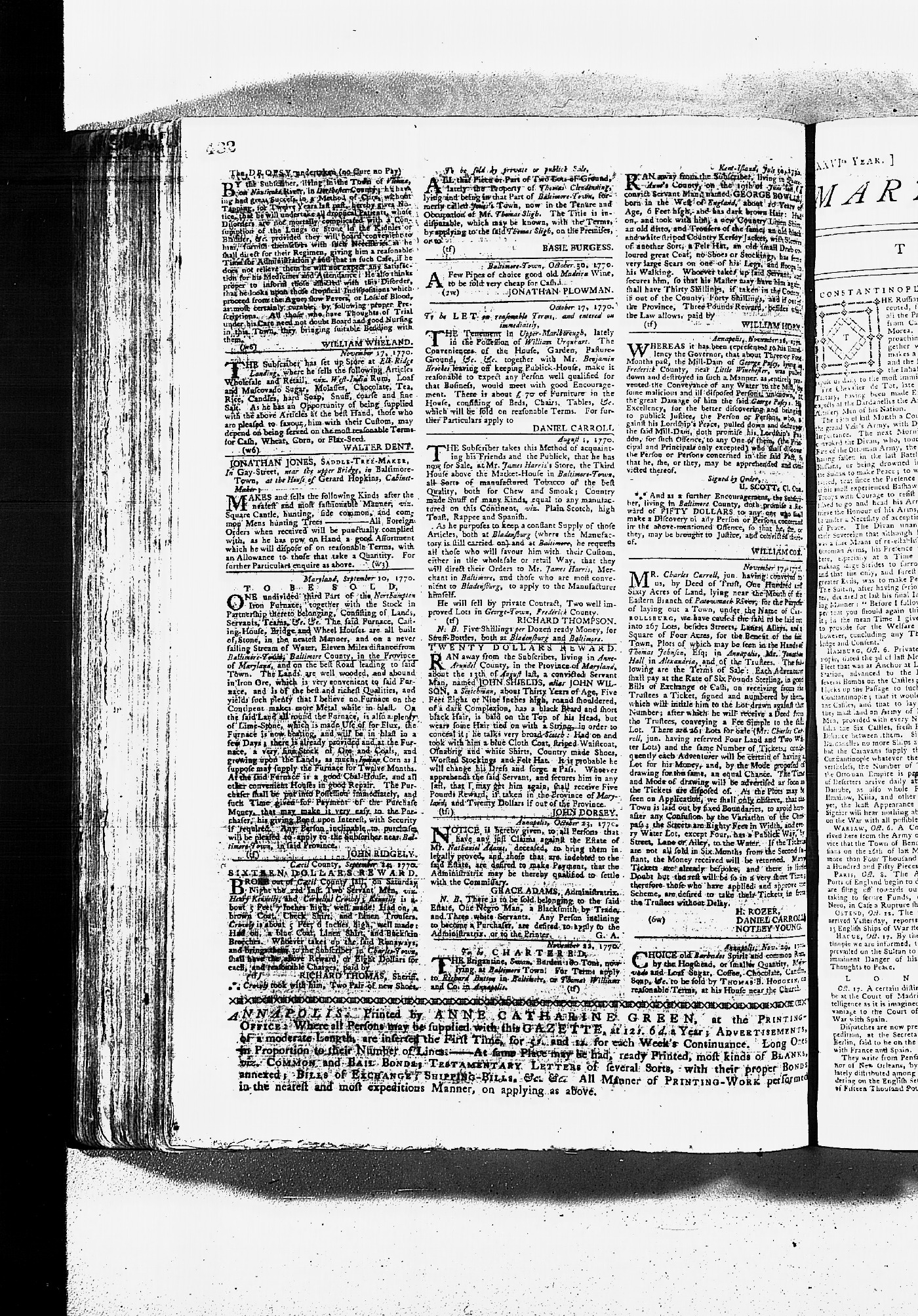 Maryland Gazette Collection MSA SC 2731 January 30, 1766 - December 26, 1771 M 1281 A Publication of the Archives of Maryland Online Image No: 1206 Enlarge and print image (4M) |