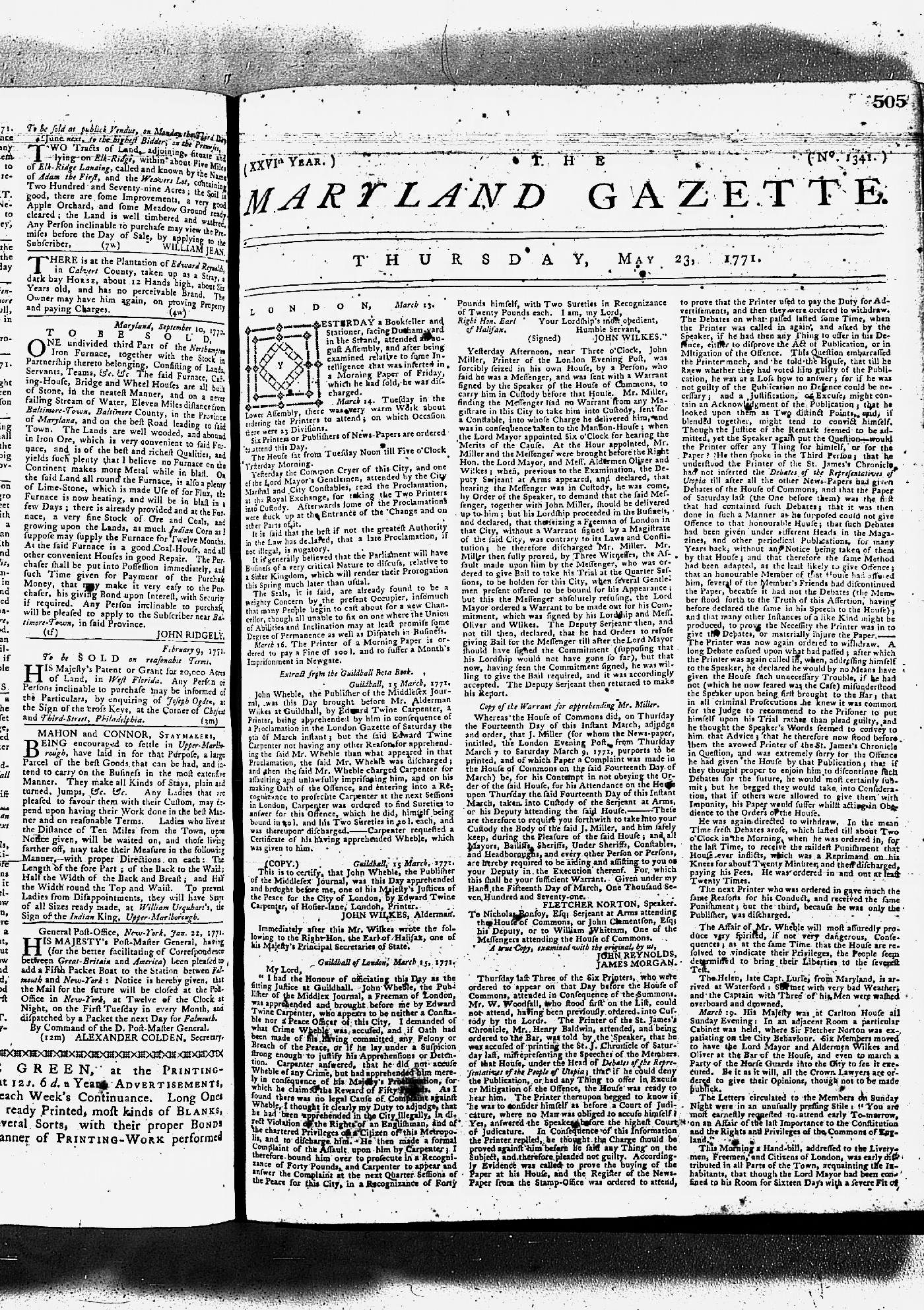 Maryland Gazette Collection MSA SC 2731 January 30, 1766 - December 26, 1771 M 1281 A Publication of the Archives of Maryland Online Image No: 1285 Enlarge and print image (4M) |