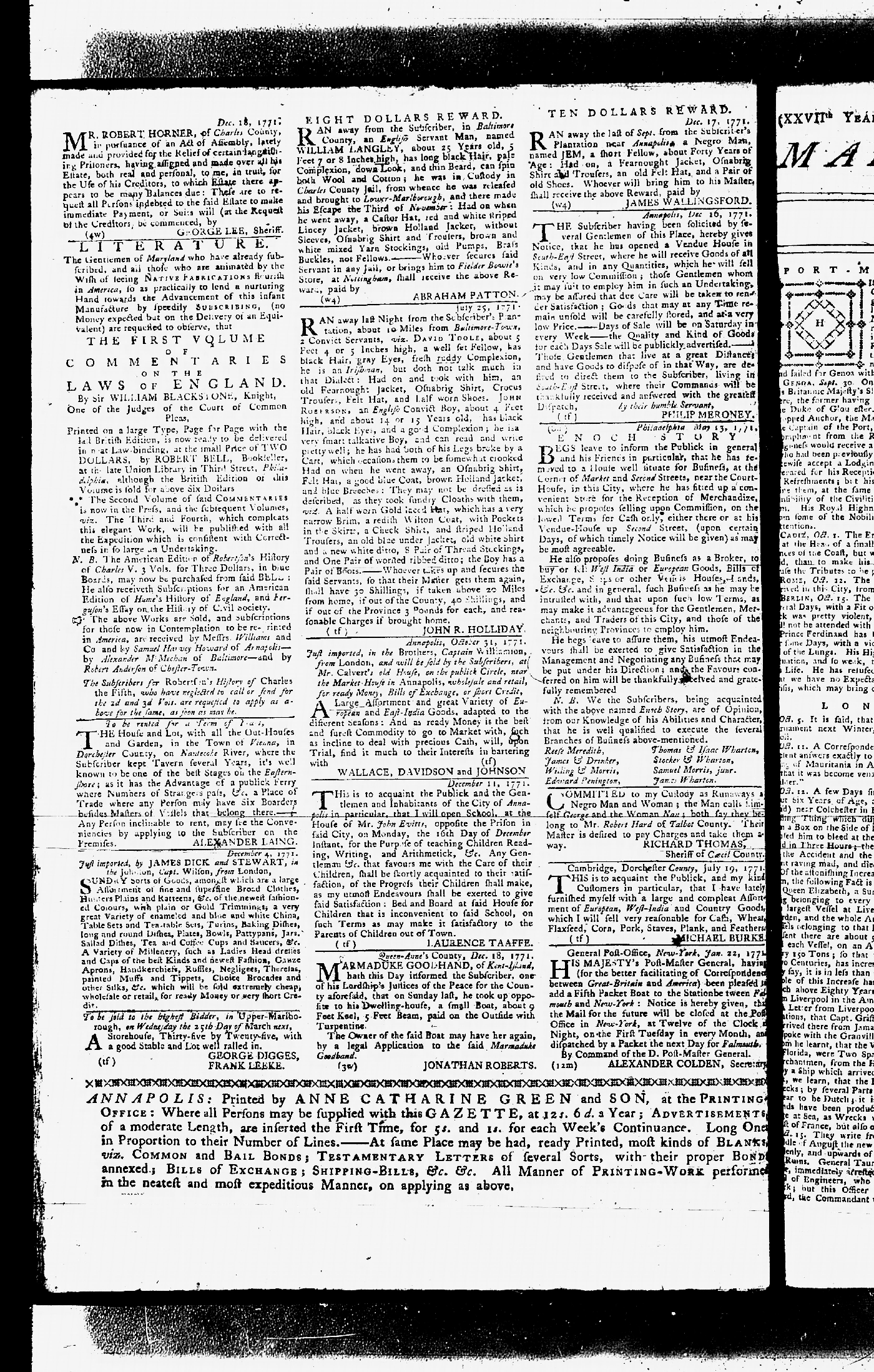 Maryland Gazette Collection MSA SC 2731 January 9, 1772 - September 10, 1779 M 1282 A Publication of the Archives of Maryland Online Image 19 Enlarge and print image (4M) |