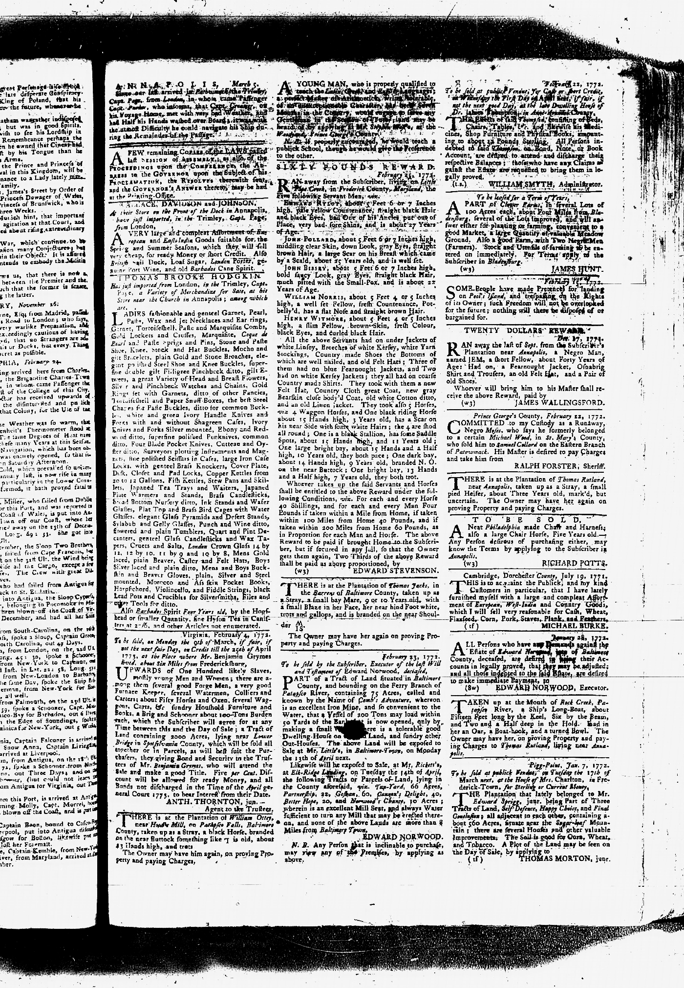 Maryland Gazette Collection MSA SC 2731 January 9, 1772 - September 10, 1779 M 1282 A Publication of the Archives of Maryland Online Image 54 Enlarge and print image (5M) |