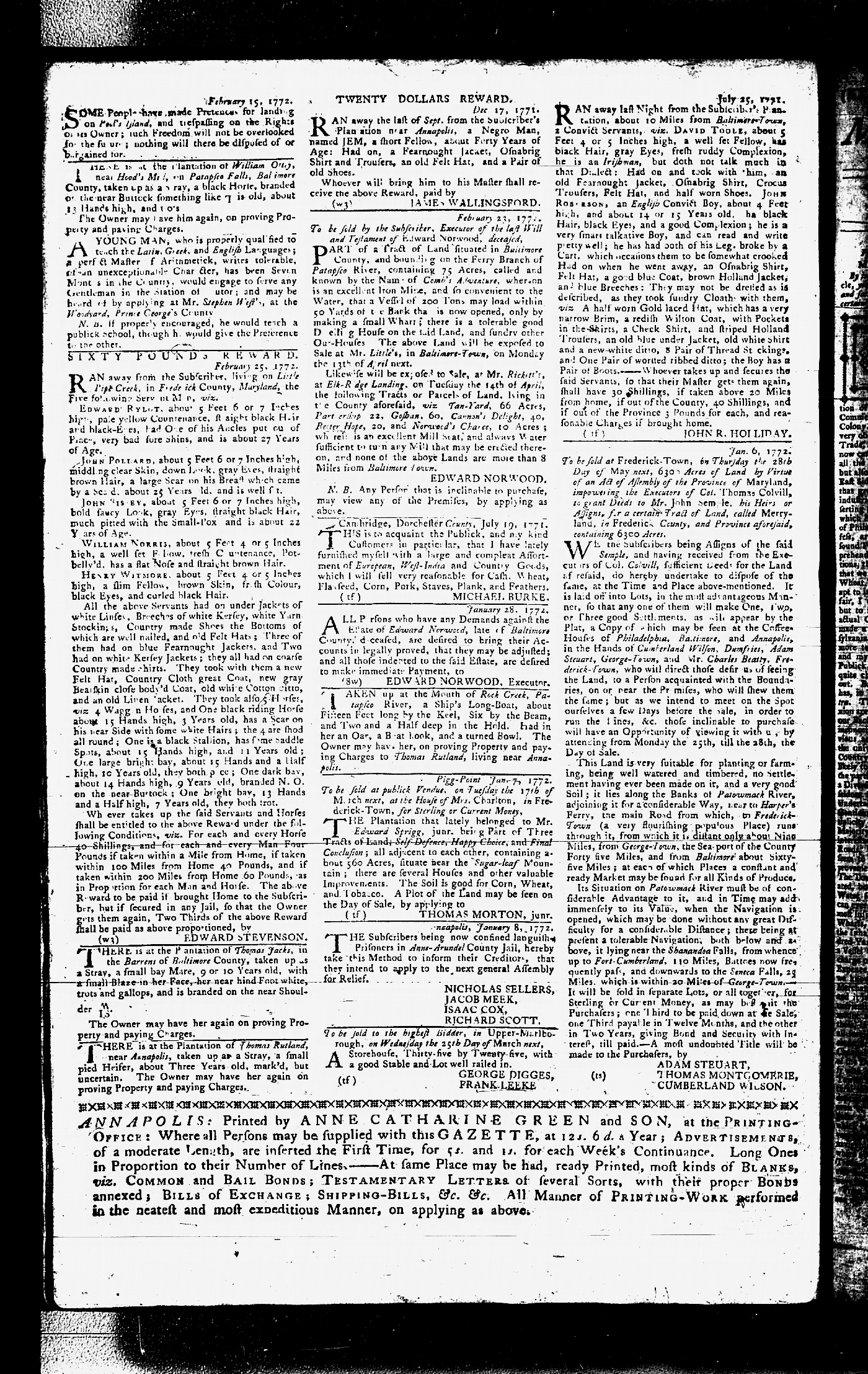 Maryland Gazette Collection MSA SC 2731 January 9, 1772 - September 10, 1779 M 1282 A Publication of the Archives of Maryland Online Image 61 Enlarge and print image (4M) |