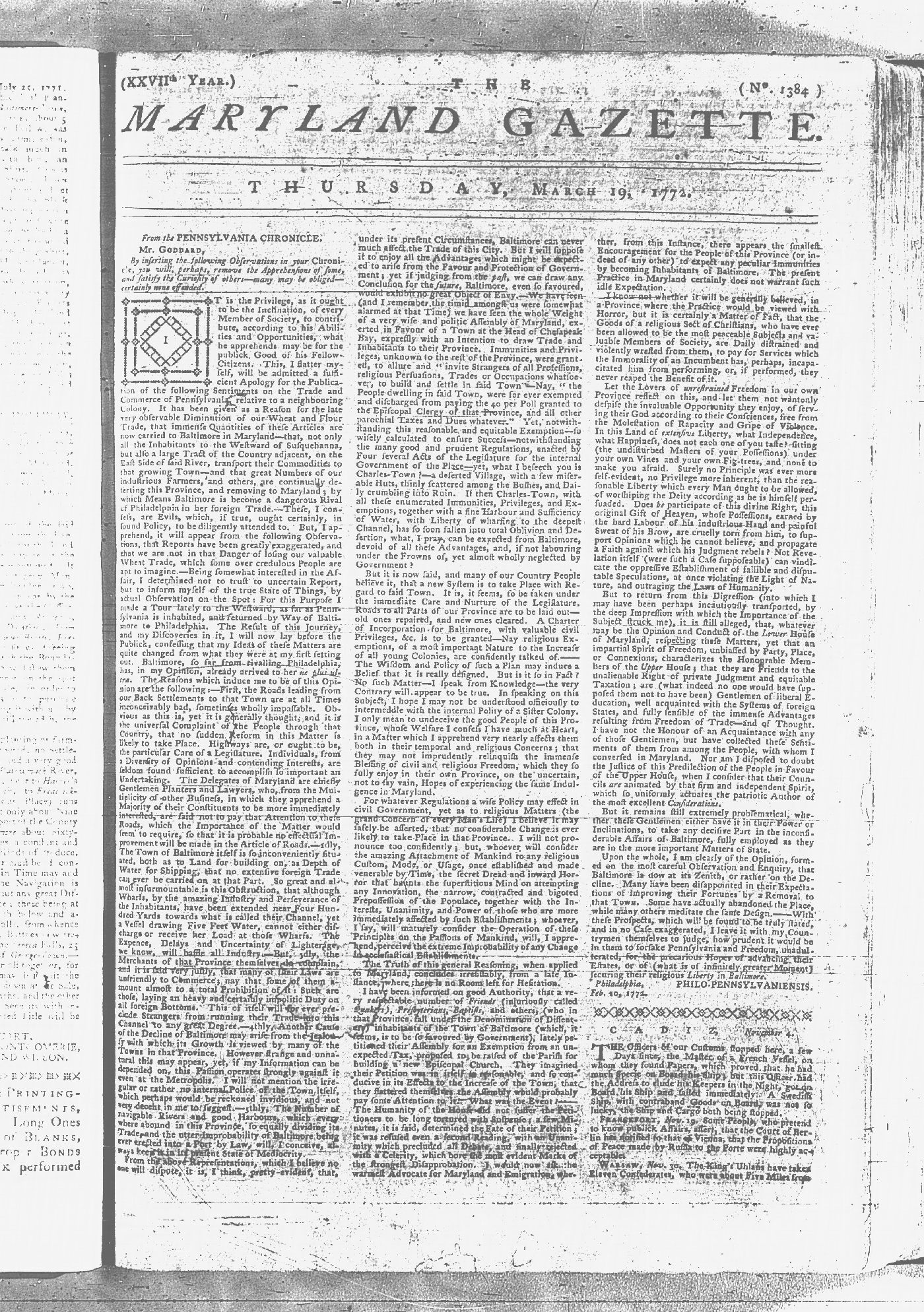 Maryland Gazette Collection MSA SC 2731 January 9, 1772 - September 10, 1779 M 1282 A Publication of the Archives of Maryland Online Image 62 Enlarge and print image (4M) |