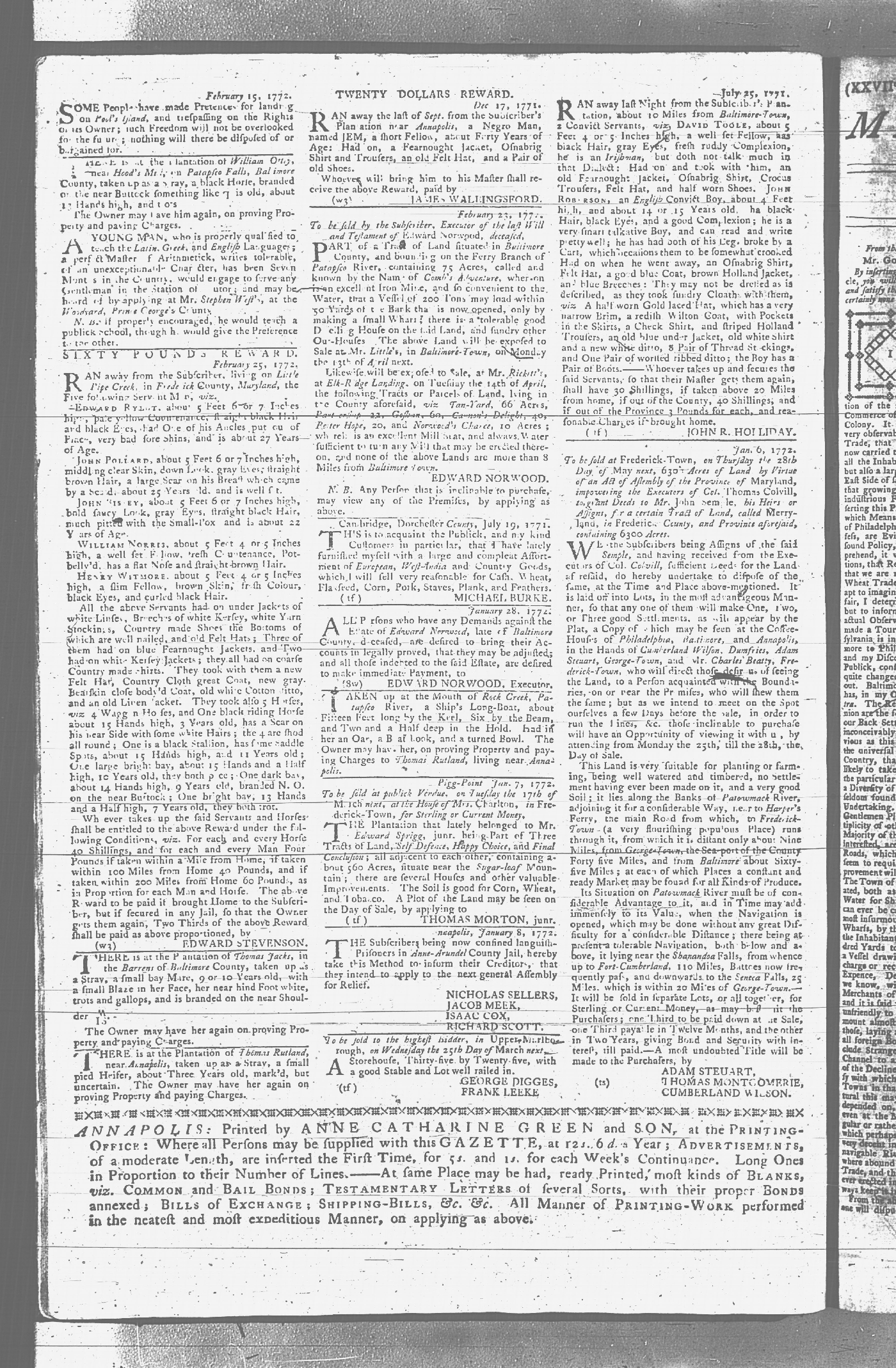 Maryland Gazette Collection MSA SC 2731 January 9, 1772 - September 10, 1779 M 1282 A Publication of the Archives of Maryland Online Image 63 Enlarge and print image (3M) |