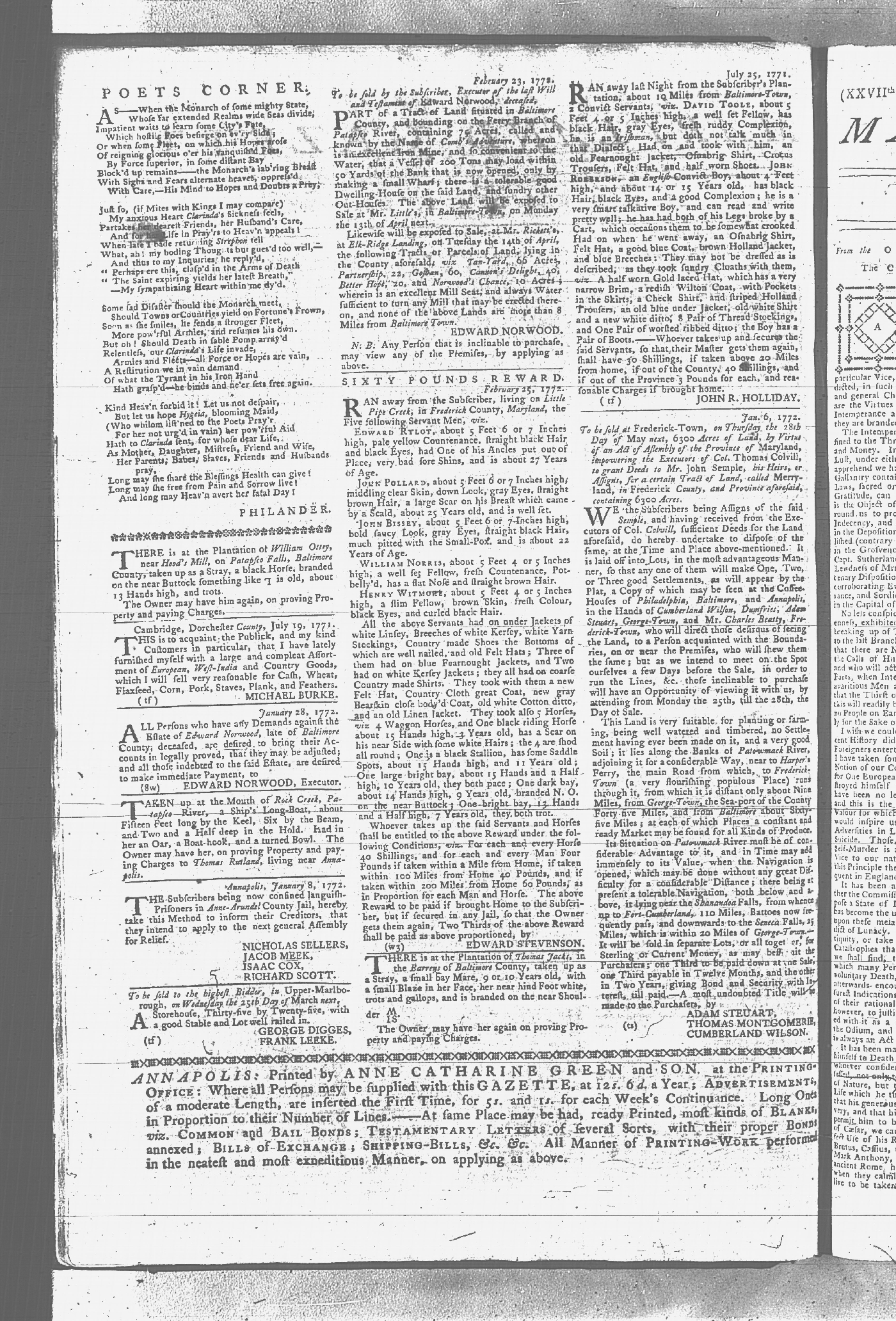 Maryland Gazette Collection MSA SC 2731 January 9, 1772 - September 10, 1779 M 1282 A Publication of the Archives of Maryland Online Image 67 Enlarge and print image (4M) |