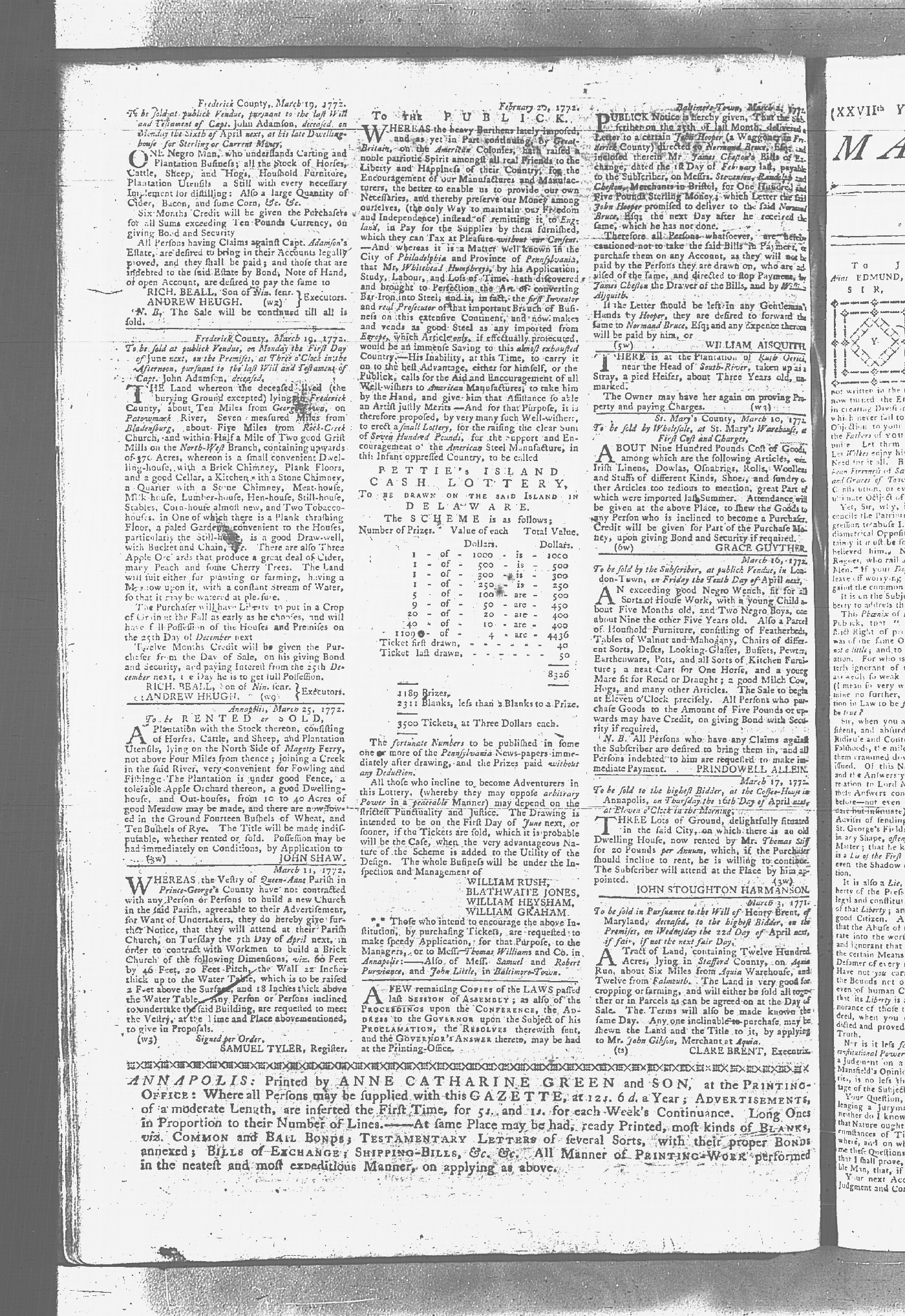 Maryland Gazette Collection MSA SC 2731 January 9, 1772 - September 10, 1779 M 1282 A Publication of the Archives of Maryland Online Image 79 Enlarge and print image (4M) |