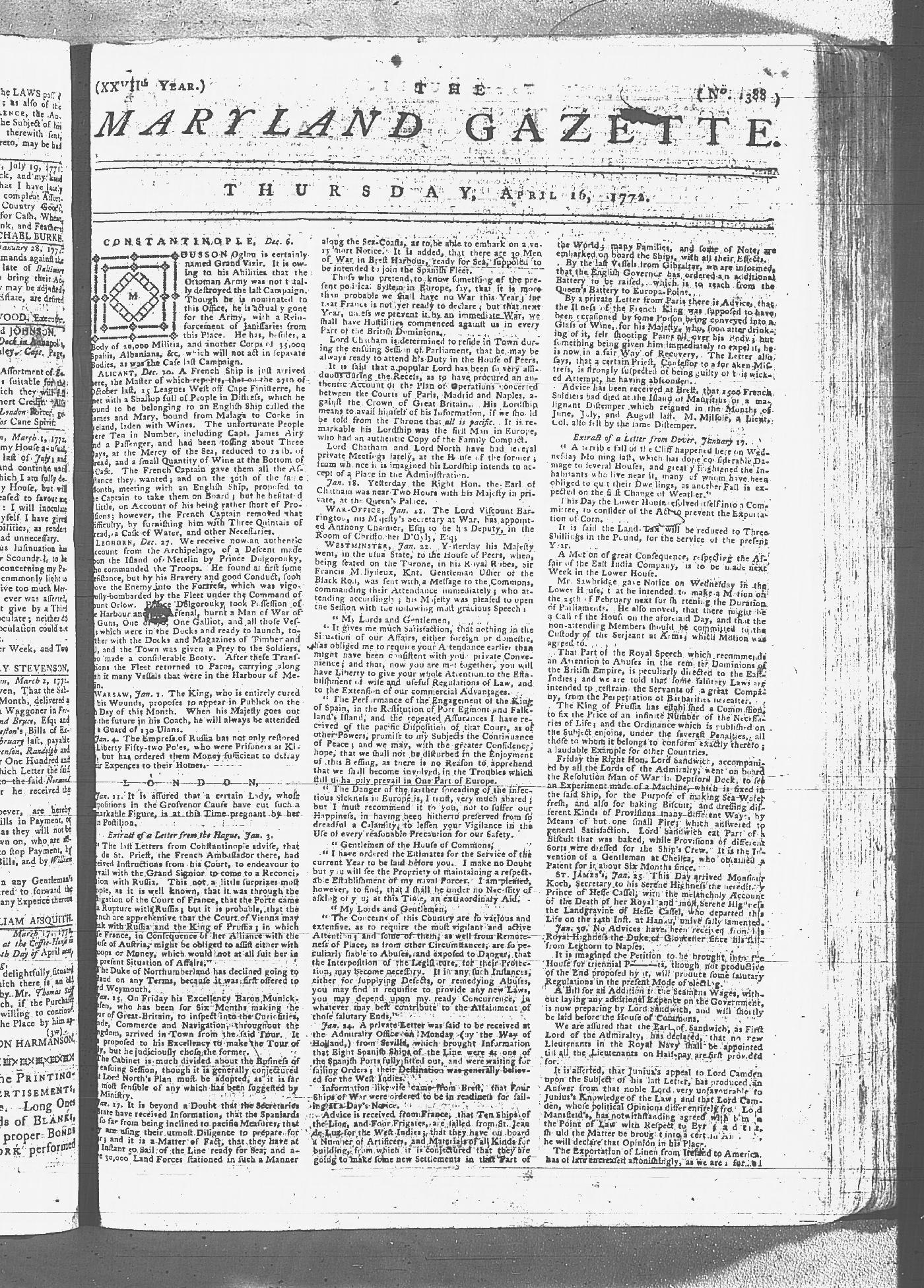Maryland Gazette Collection MSA SC 2731 January 9, 1772 - September 10, 1779 M 1282 A Publication of the Archives of Maryland Online Image 86 Enlarge and print image (4M) |