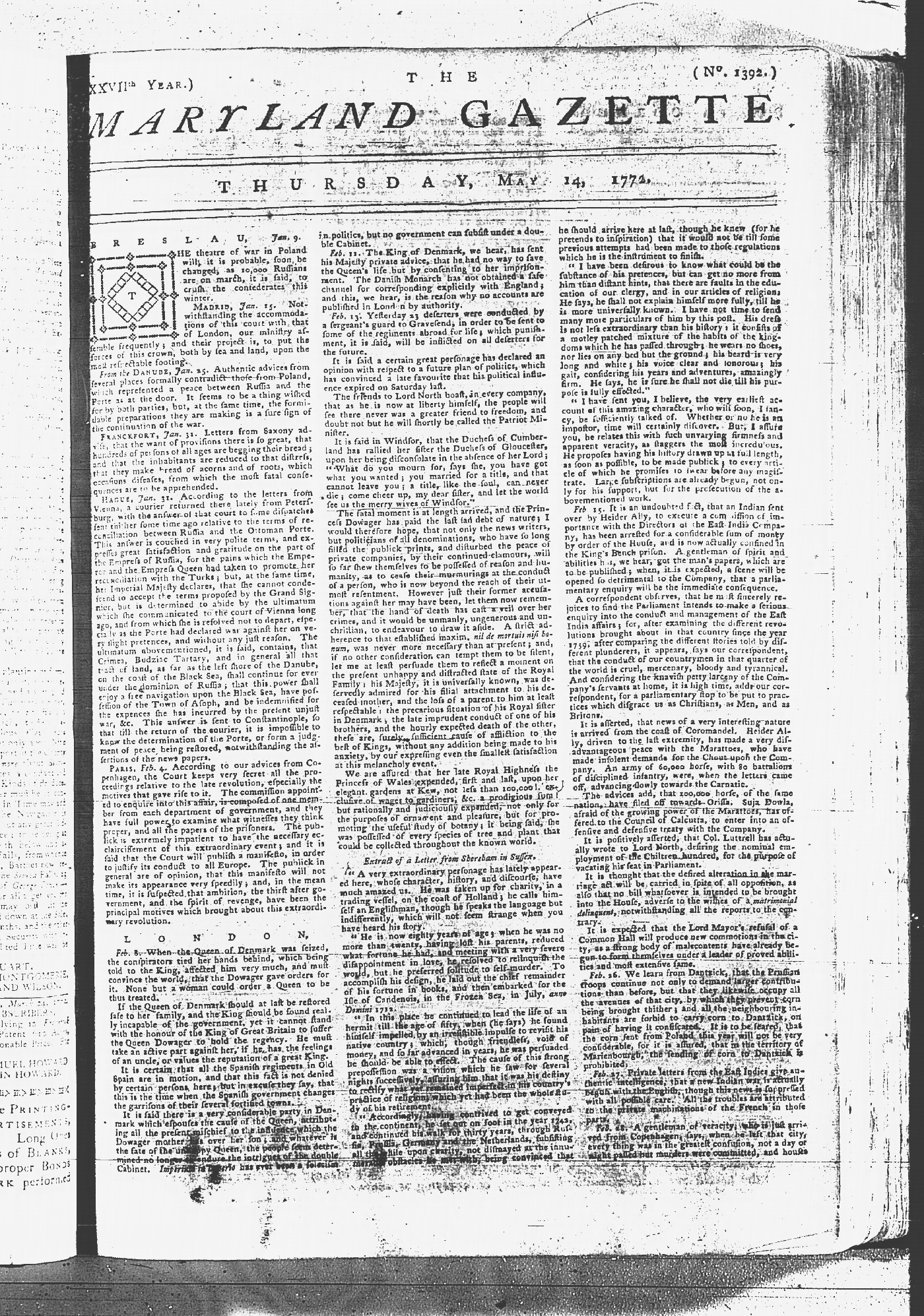 Maryland Gazette Collection MSA SC 2731 January 9, 1772 - September 10, 1779 M 1282 A Publication of the Archives of Maryland Online Image 106 Enlarge and print image (4M) |