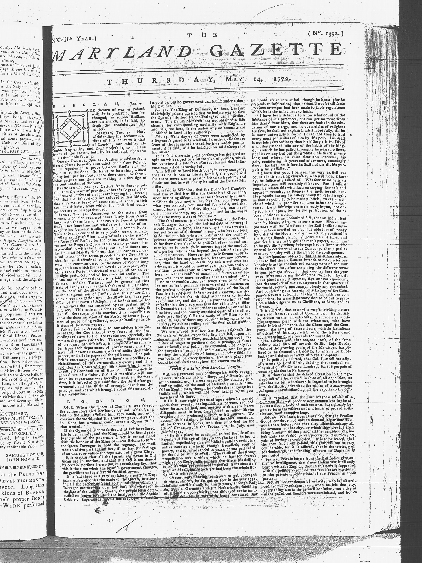 Maryland Gazette Collection MSA SC 2731 January 9, 1772 - September 10, 1779 M 1282 A Publication of the Archives of Maryland Online Image 108 Enlarge and print image (4M) |