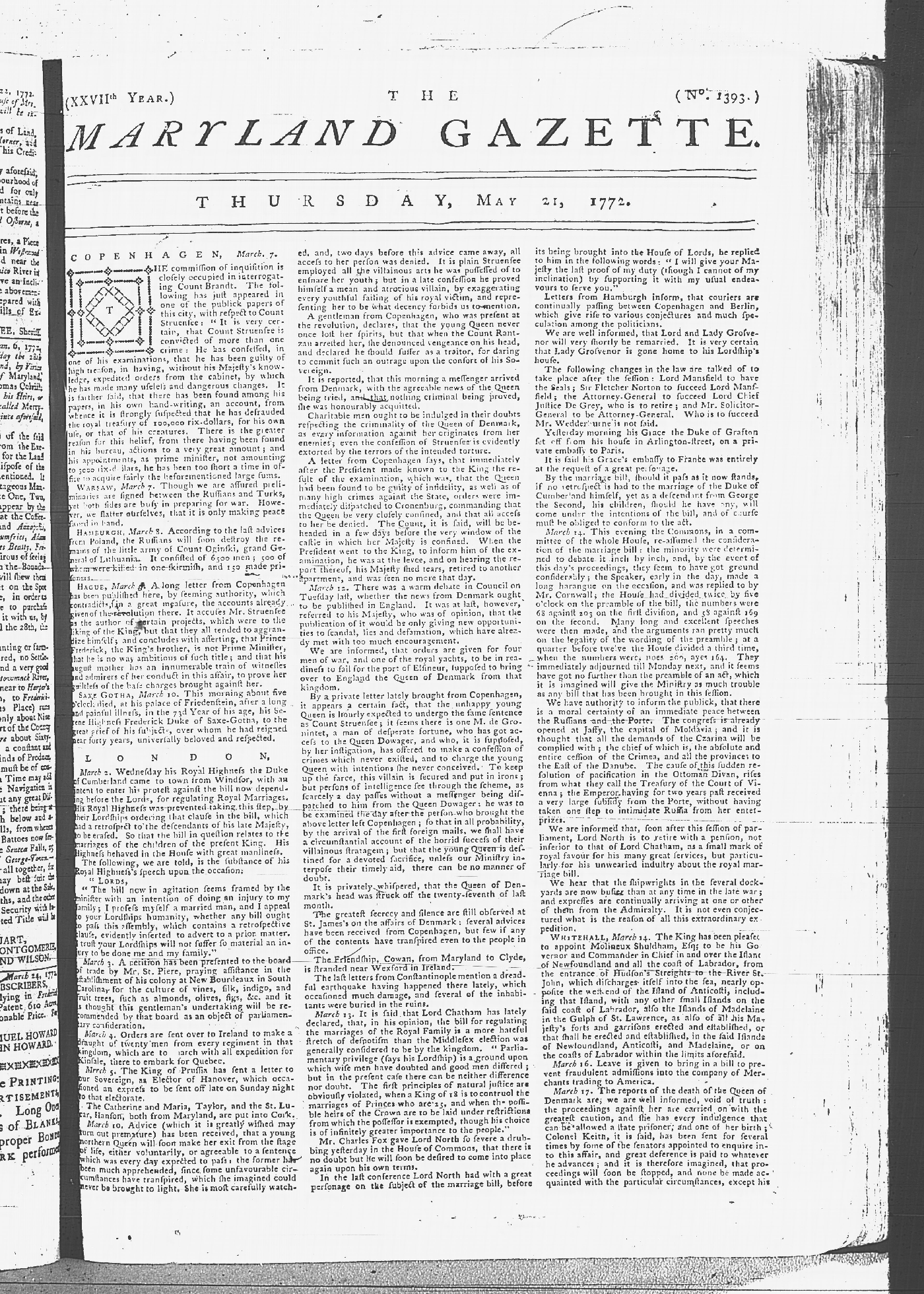 Maryland Gazette Collection MSA SC 2731 January 9, 1772 - September 10, 1779 M 1282 A Publication of the Archives of Maryland Online Image 112 Enlarge and print image (4M) |