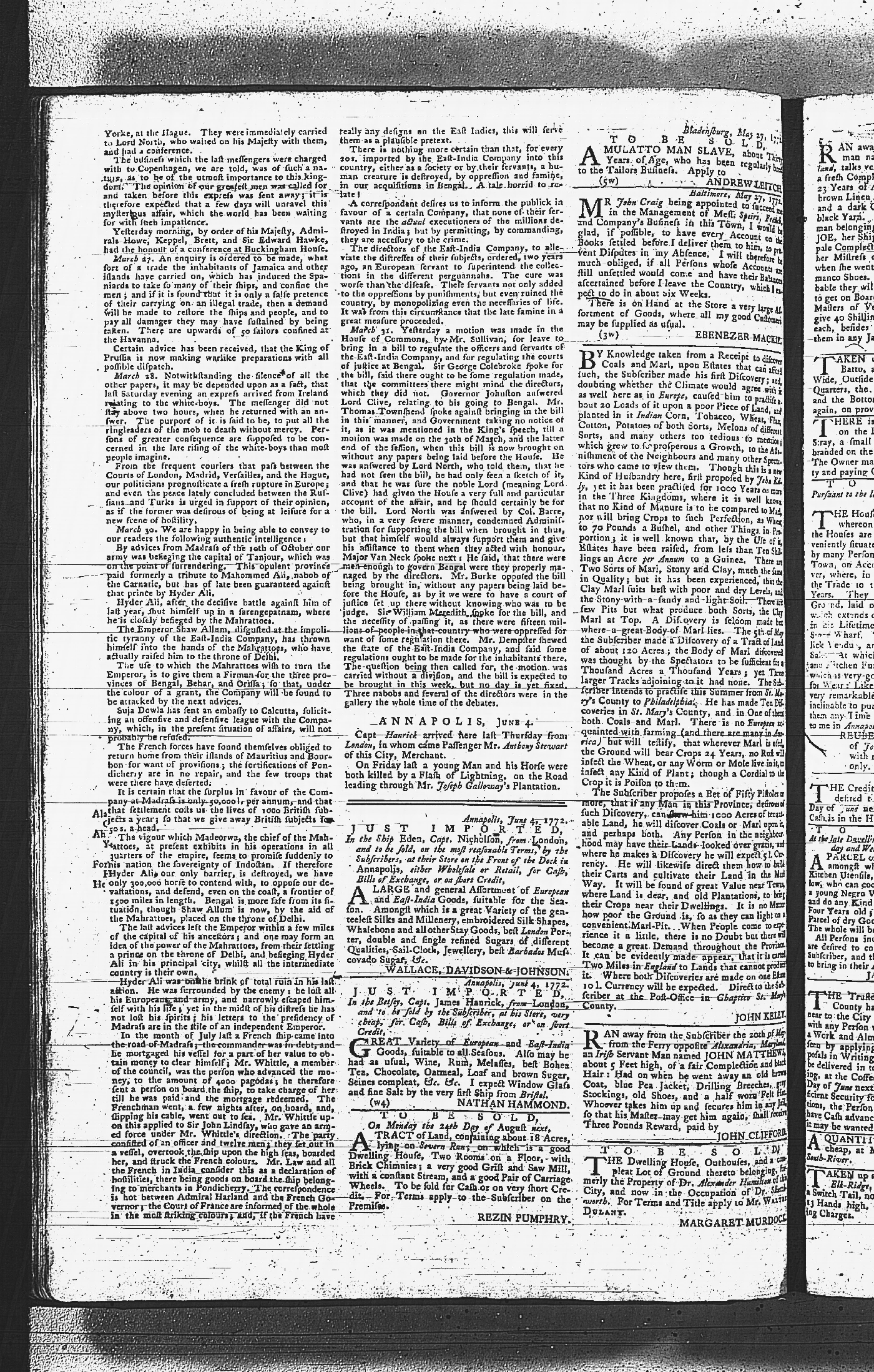 Maryland Gazette Collection MSA SC 2731 January 9, 1772 - September 10, 1779 M 1282 A Publication of the Archives of Maryland Online Image 125 Enlarge and print image (5M) |