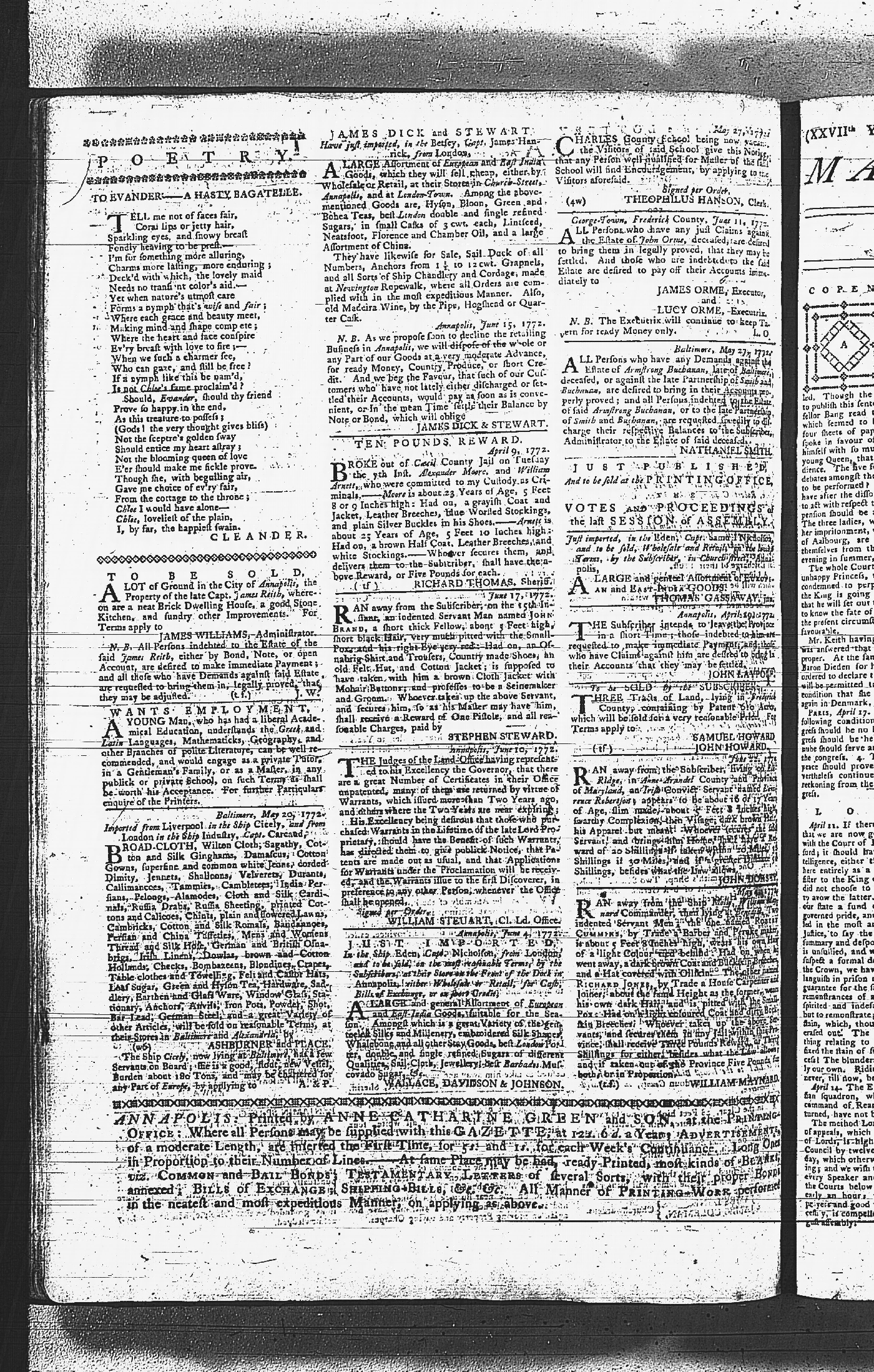 Maryland Gazette Collection MSA SC 2731 January 9, 1772 - September 10, 1779 M 1282 A Publication of the Archives of Maryland Online Image 151 Enlarge and print image (6M) |