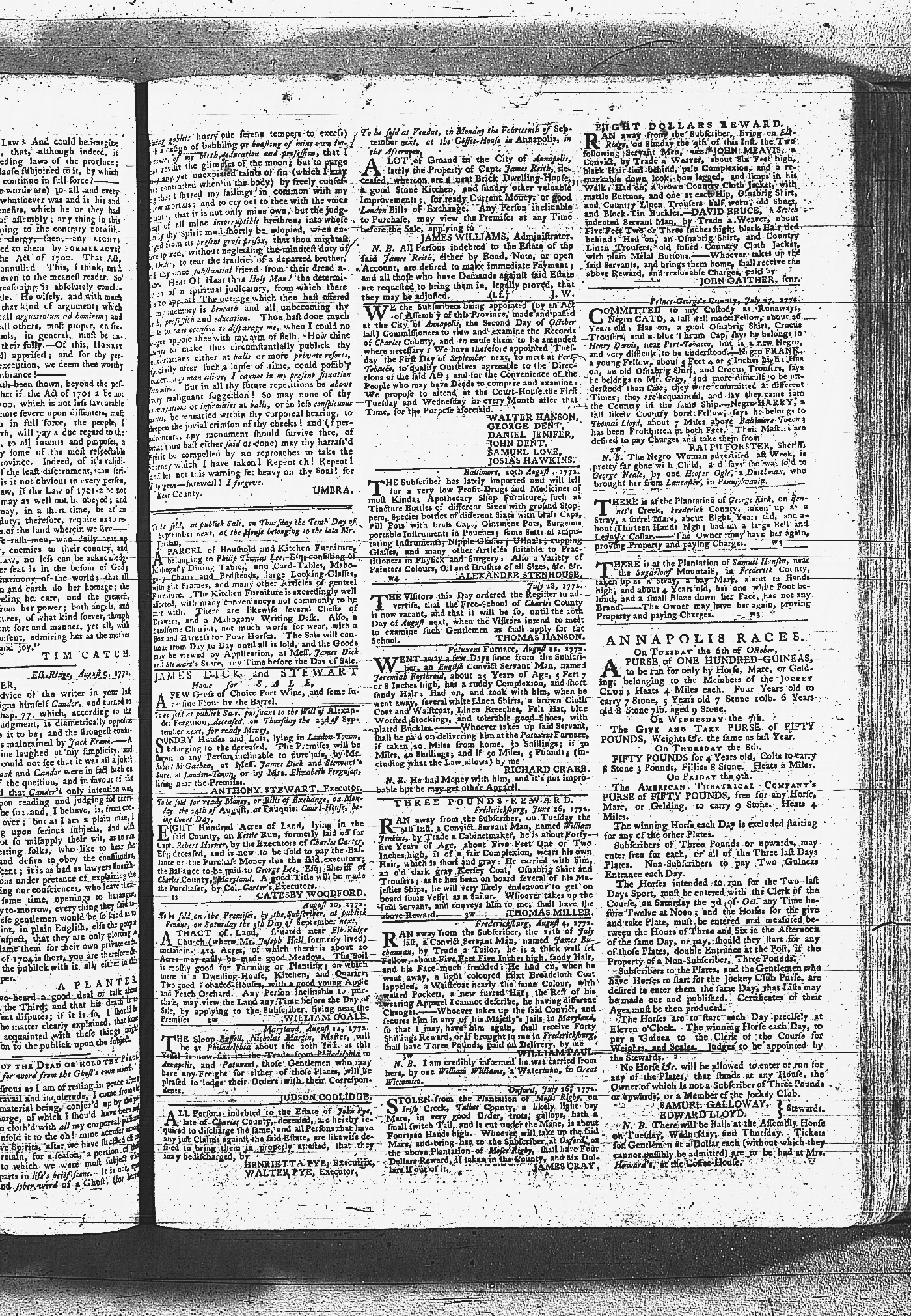 Maryland Gazette Collection MSA SC 2731 January 9, 1772 - September 10, 1779 M 1282 A Publication of the Archives of Maryland Online Image 172 Enlarge and print image (6M) |