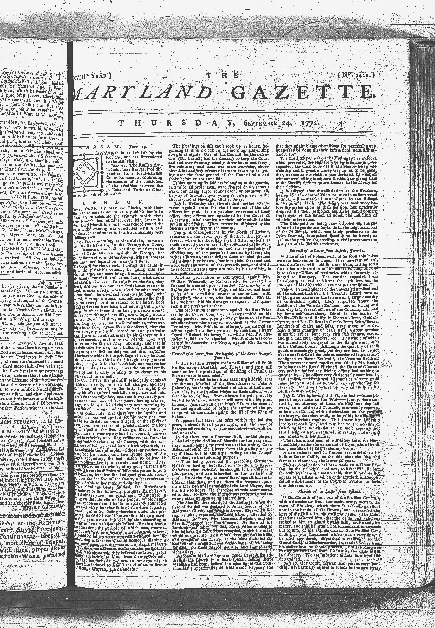 Maryland Gazette Collection MSA SC 2731 January 9, 1772 - September 10, 1779 M 1282 A Publication of the Archives of Maryland Online Image 198 Enlarge and print image (6M) |