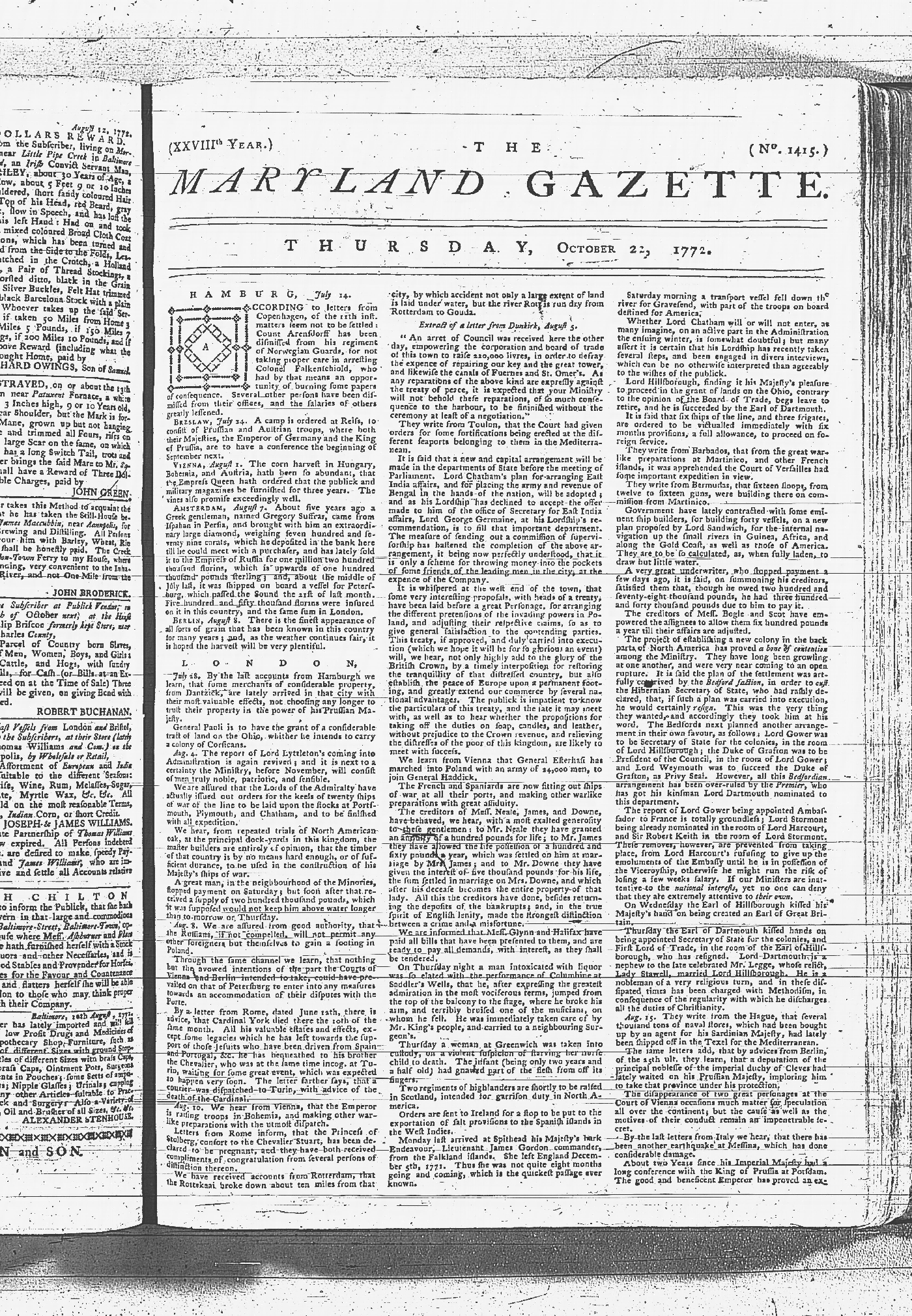 Maryland Gazette Collection MSA SC 2731 January 9, 1772 - September 10, 1779 M 1282 A Publication of the Archives of Maryland Online Image 216 Enlarge and print image (5M) |