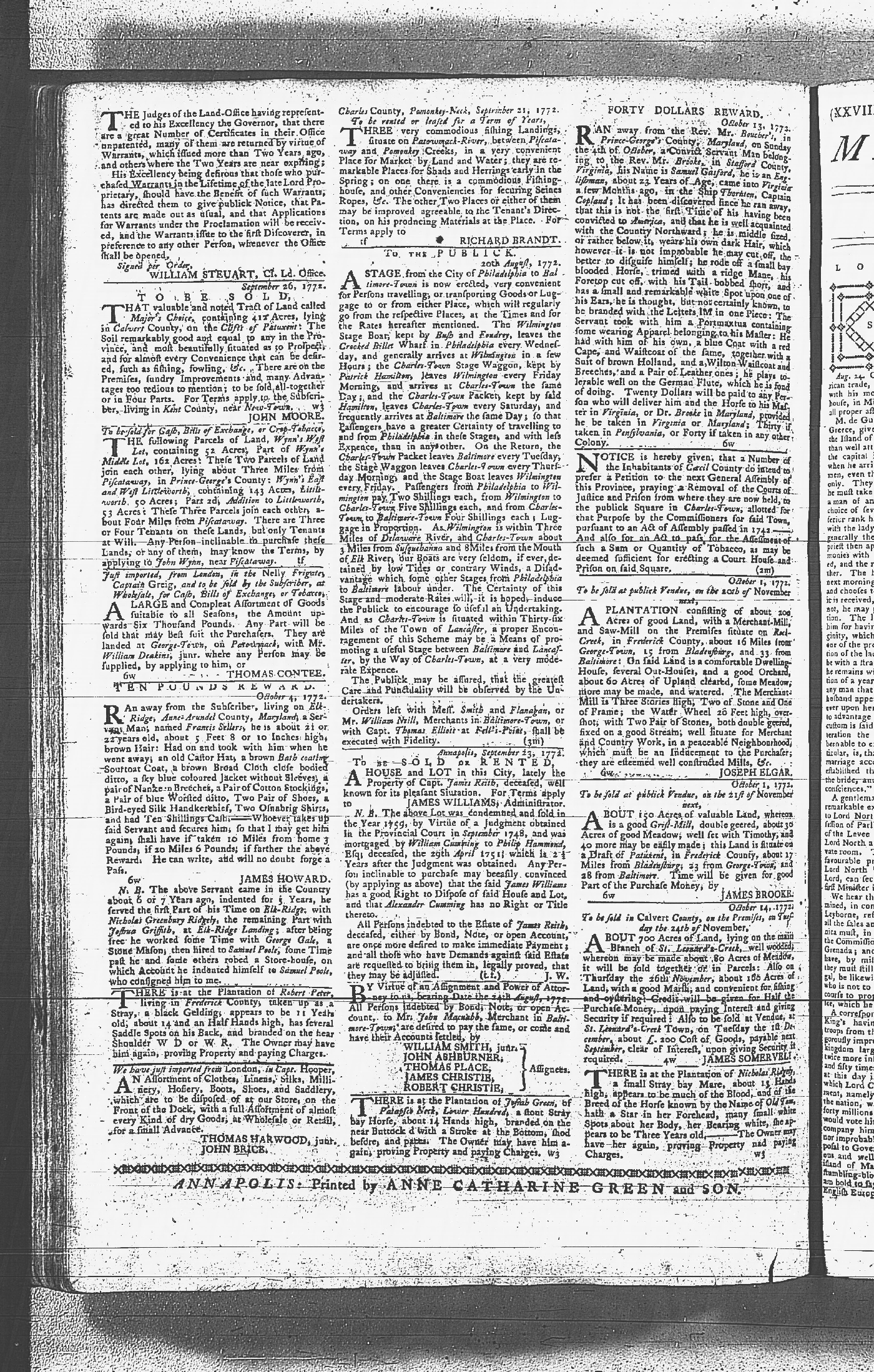 Maryland Gazette Collection MSA SC 2731 January 9, 1772 - September 10, 1779 M 1282 A Publication of the Archives of Maryland Online Image 229 Enlarge and print image (5M) |