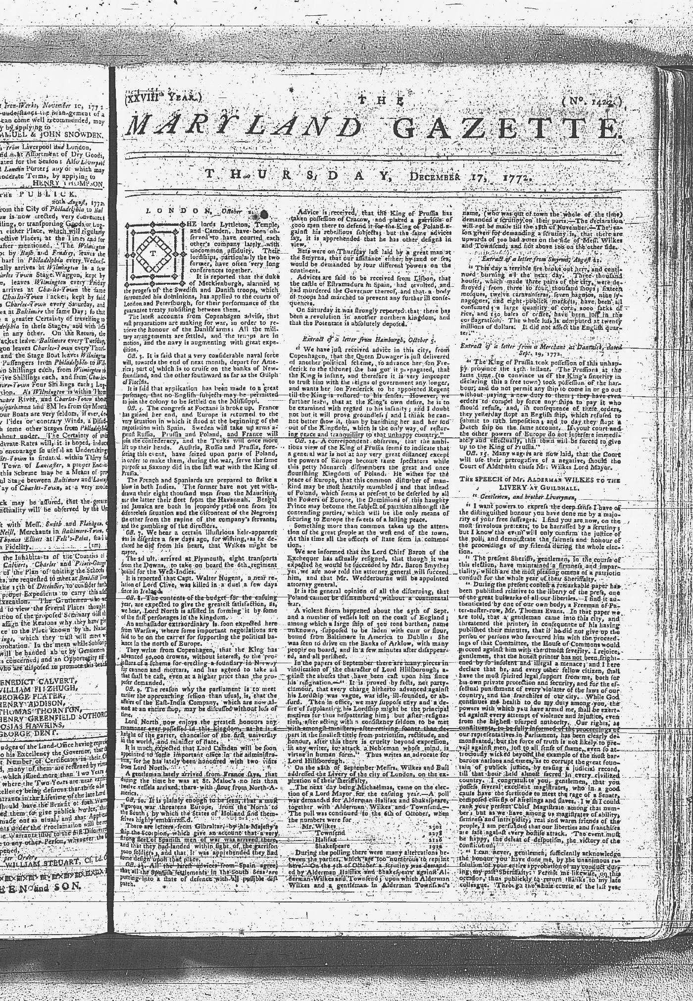 Maryland Gazette Collection MSA SC 2731 January 9, 1772 - September 10, 1779 M 1282 A Publication of the Archives of Maryland Online Image 252 Enlarge and print image (6M) |