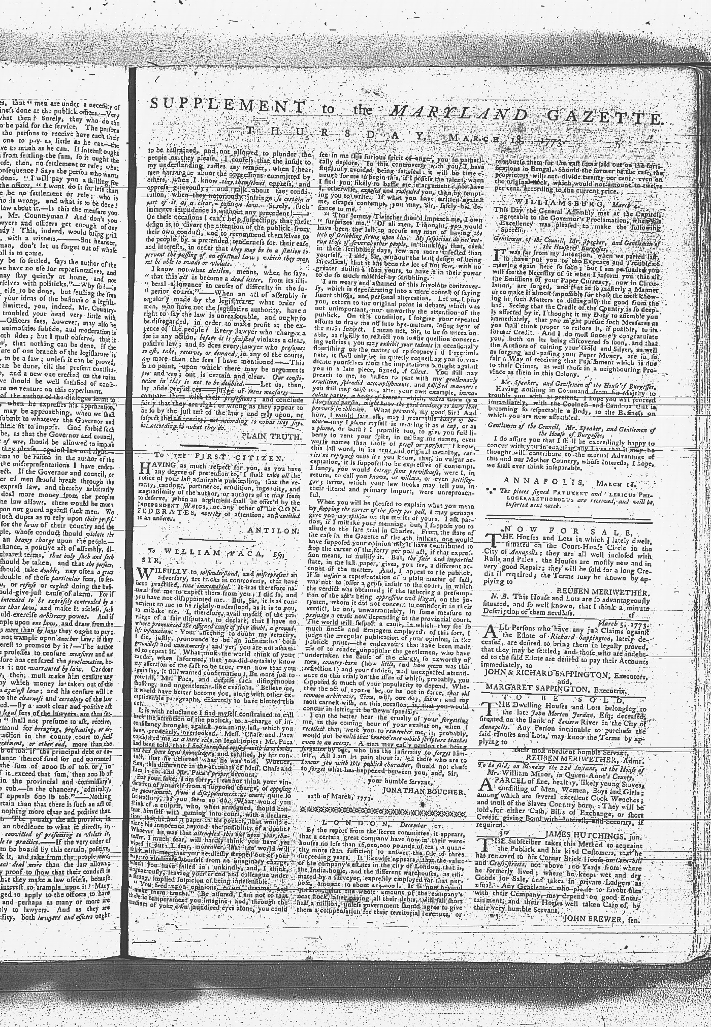Maryland Gazette Collection MSA SC 2731 January 9, 1772 - September 10, 1779 M 1282 A Publication of the Archives of Maryland Online Image 314 Enlarge and print image (6M) |