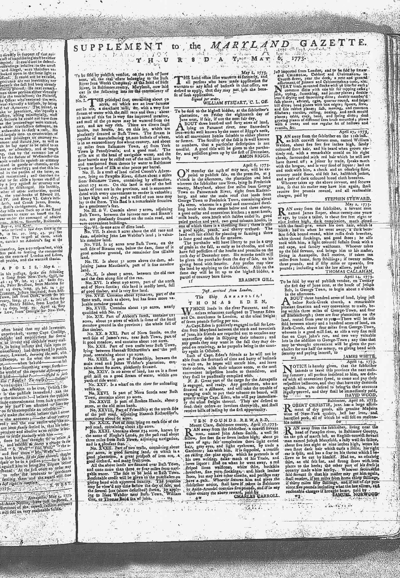 Maryland Gazette Collection MSA SC 2731 January 9, 1772 - September 10, 1779 M 1282 A Publication of the Archives of Maryland Online Image 348 Enlarge and print image (6M) |