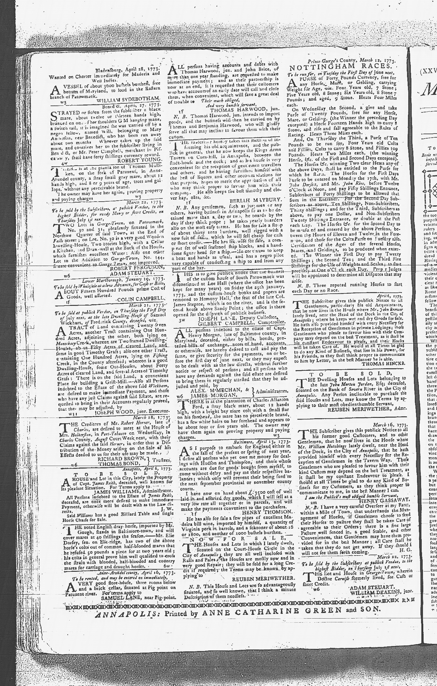 Maryland Gazette Collection MSA SC 2731 January 9, 1772 - September 10, 1779 M 1282 A Publication of the Archives of Maryland Online Image 351 Enlarge and print image (4M) |
