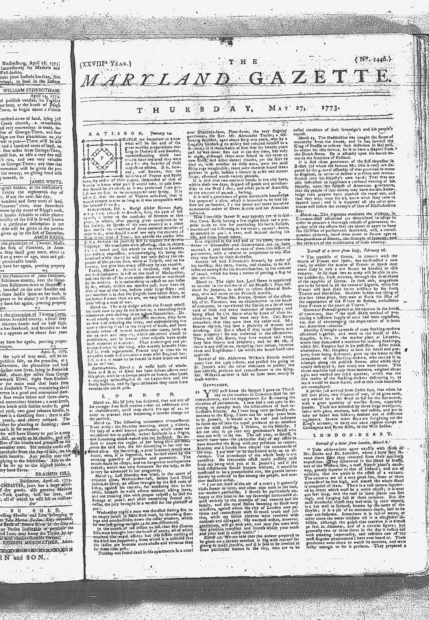 Maryland Gazette Collection MSA SC 2731 January 9, 1772 - September 10, 1779 M 1282 A Publication of the Archives of Maryland Online Image 360 Enlarge and print image (5M) |