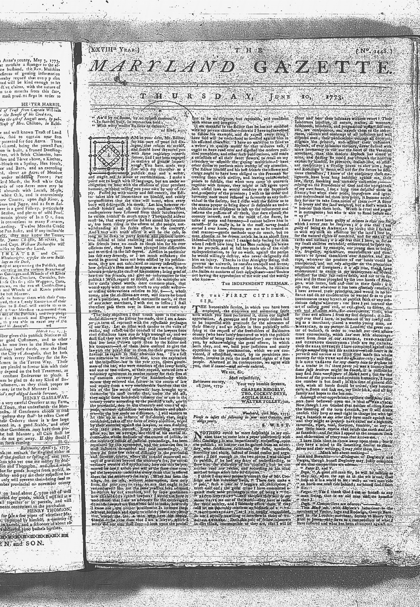 Maryland Gazette Collection MSA SC 2731 January 9, 1772 - September 10, 1779 M 1282 A Publication of the Archives of Maryland Online Image 374 Enlarge and print image (7M) |