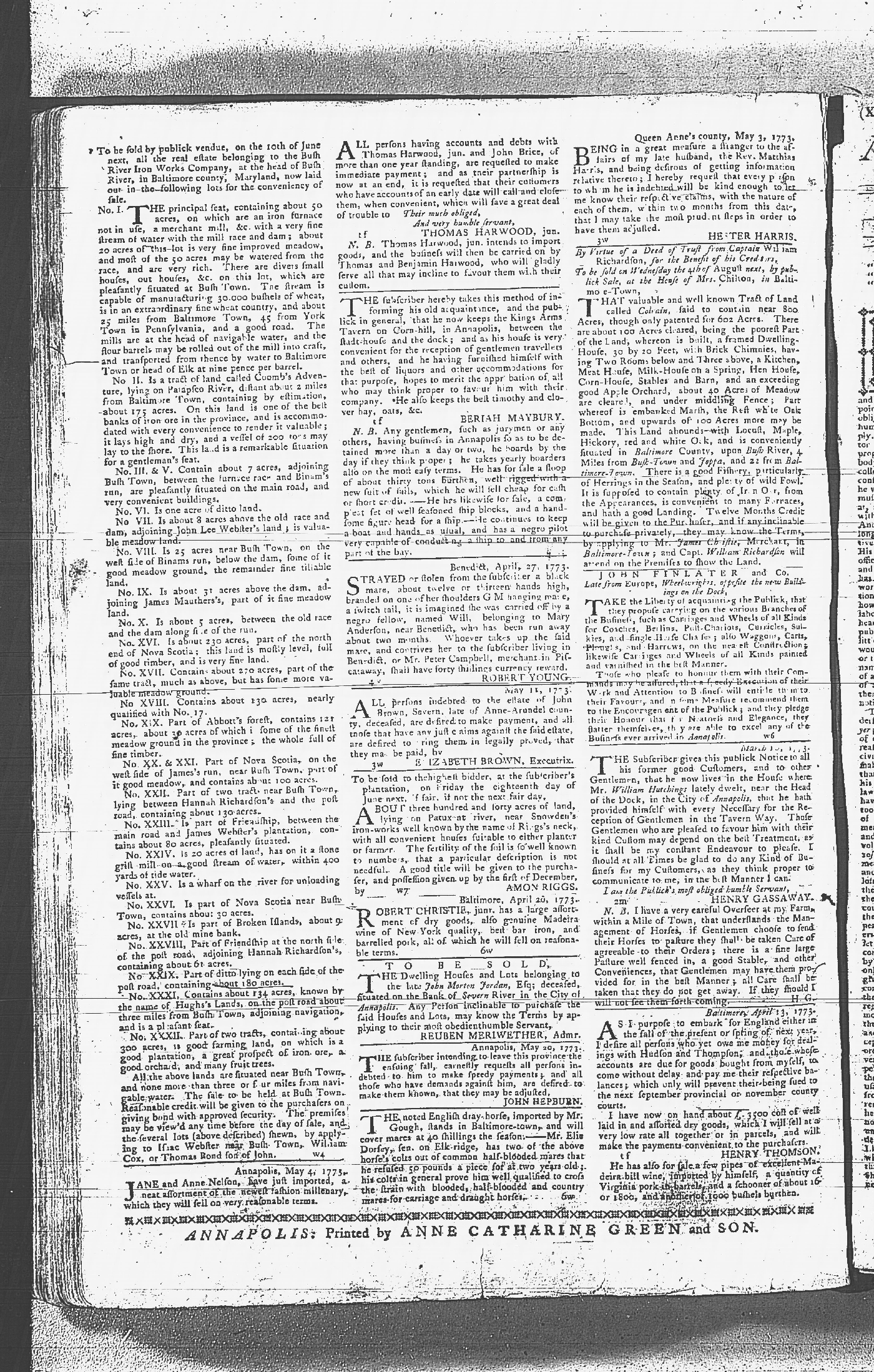 Maryland Gazette Collection MSA SC 2731 January 9, 1772 - September 10, 1779 M 1282 A Publication of the Archives of Maryland Online Image 375 Enlarge and print image (5M) |