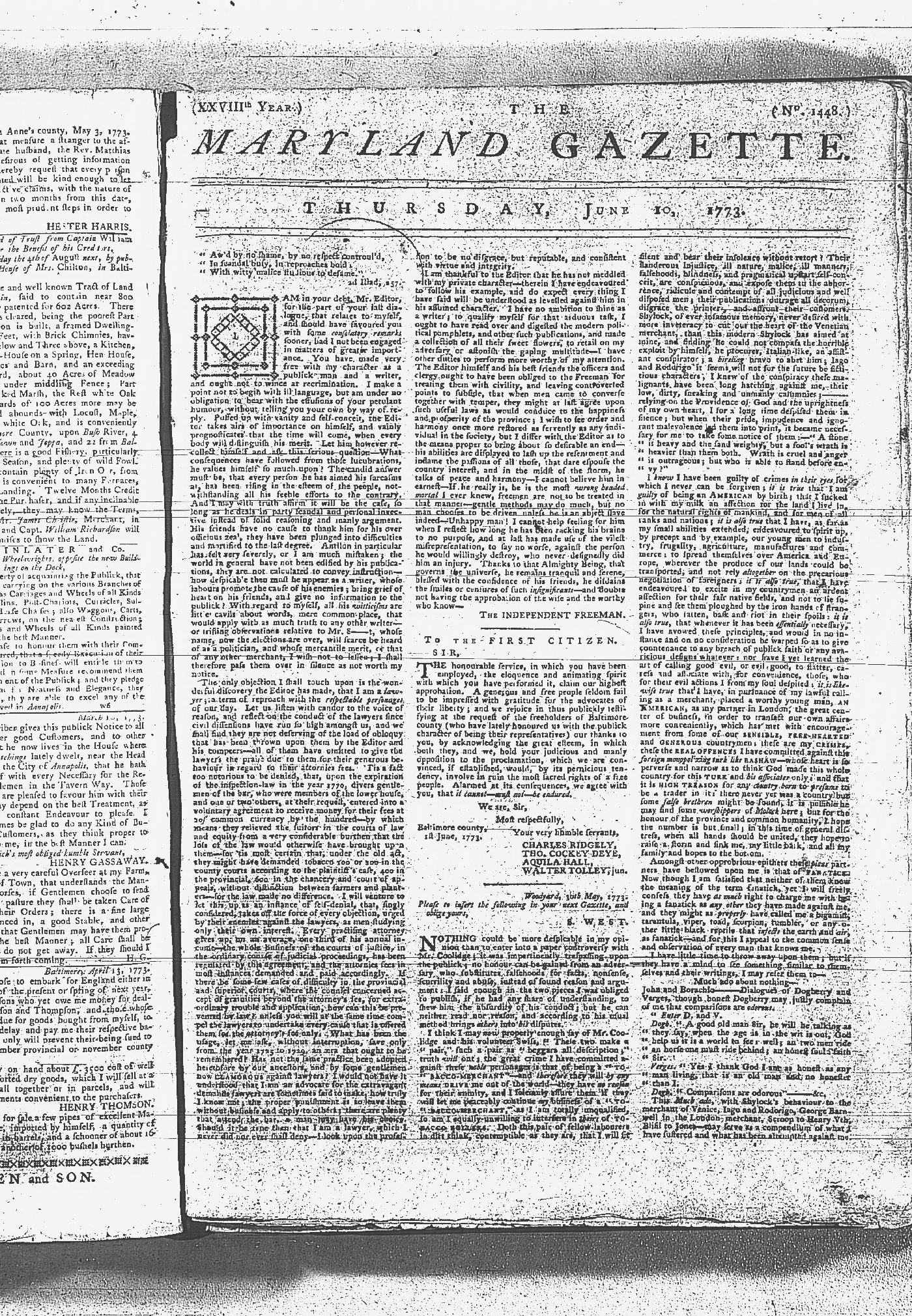 Maryland Gazette Collection MSA SC 2731 January 9, 1772 - September 10, 1779 M 1282 A Publication of the Archives of Maryland Online Image 376 Enlarge and print image (7M) |