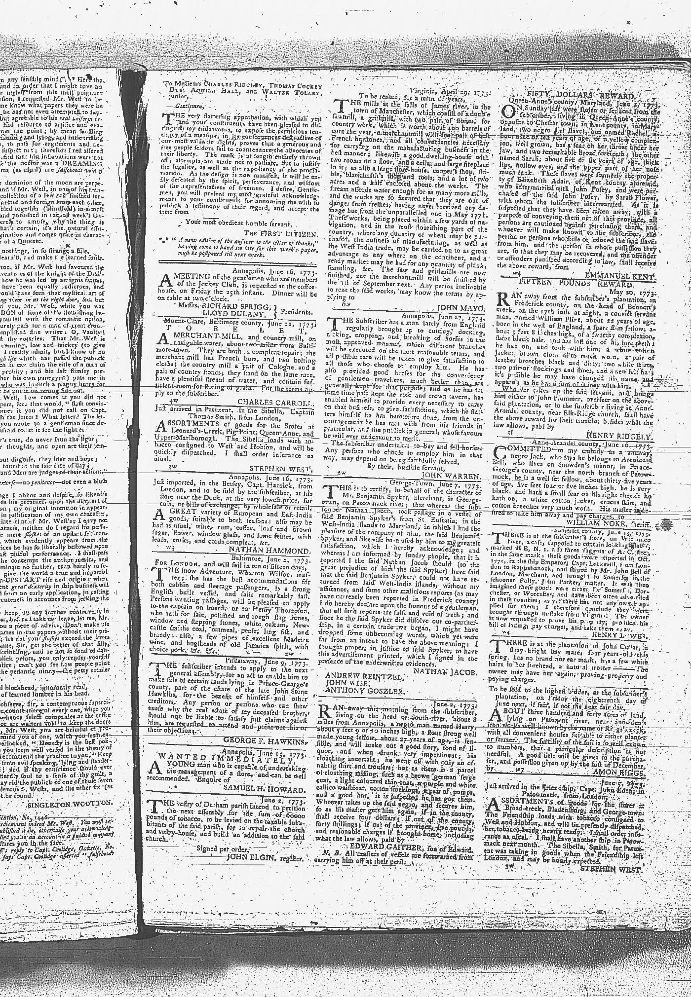 Maryland Gazette Collection MSA SC 2731 January 9, 1772 - September 10, 1779 M 1282 A Publication of the Archives of Maryland Online Image 382 Enlarge and print image (6M) |