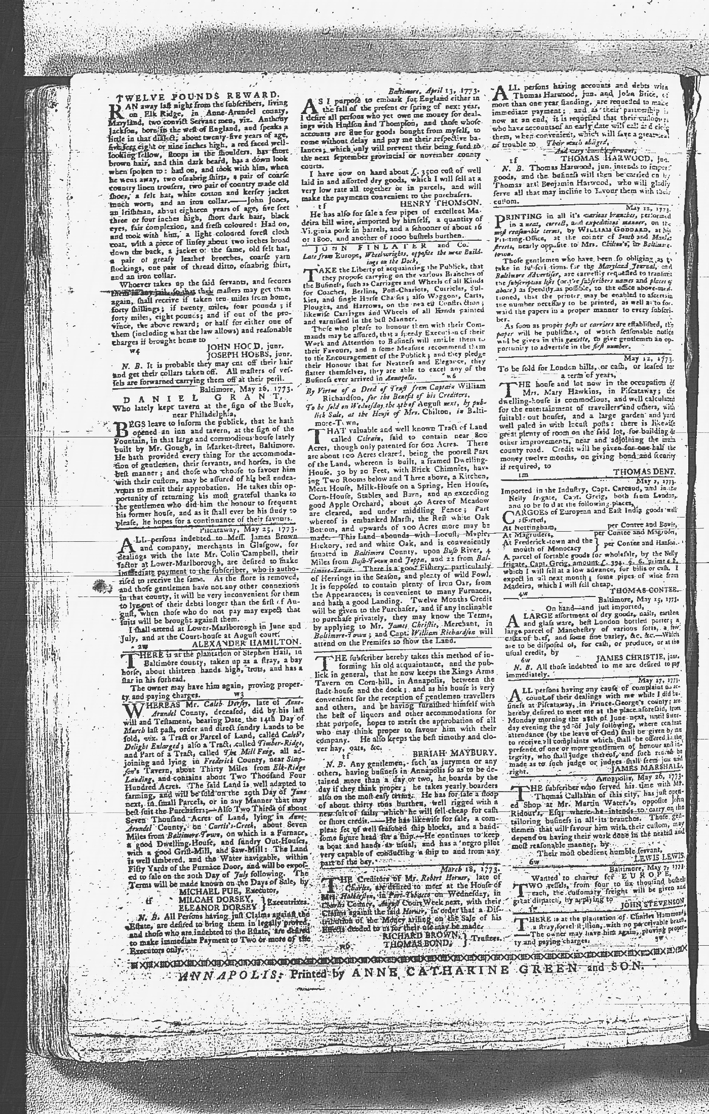 Maryland Gazette Collection MSA SC 2731 January 9, 1772 - September 10, 1779 M 1282 A Publication of the Archives of Maryland Online Image 383 Enlarge and print image (5M) |