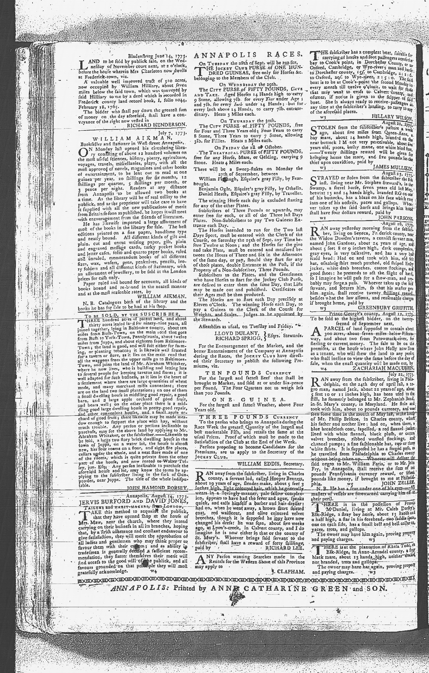 Maryland Gazette Collection MSA SC 2731 January 9, 1772 - September 10, 1779 M 1282 A Publication of the Archives of Maryland Online Image 449 Enlarge and print image (5M) |