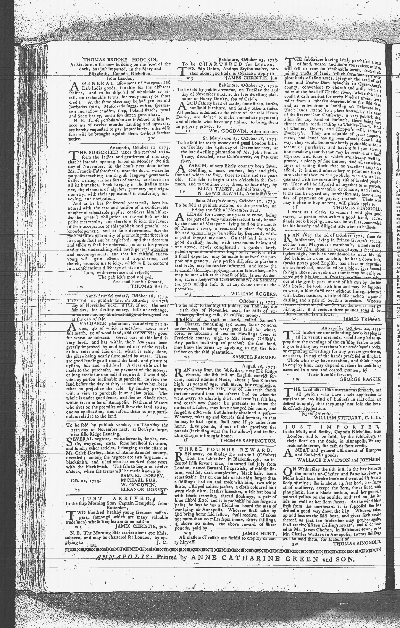 Maryland Gazette Collection MSA SC 2731 January 9, 1772 - September 10, 1779 M 1282 A Publication of the Archives of Maryland Online Image 487 Enlarge and print image (5M) |