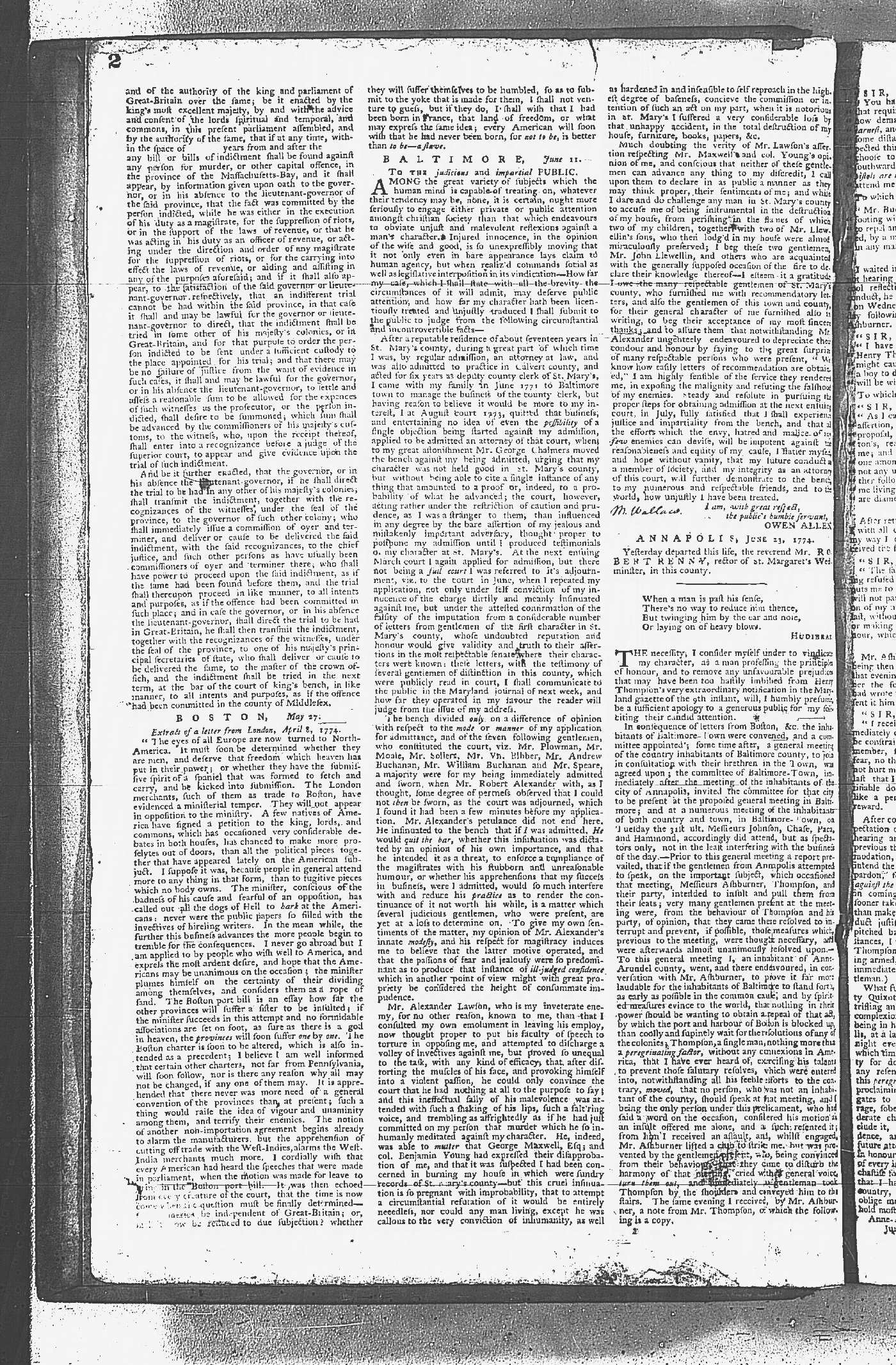 Maryland Gazette Collection MSA SC 2731 January 9, 1772 - September 10, 1779 M 1282 A Publication of the Archives of Maryland Online Image 633 Enlarge and print image (5M) |
