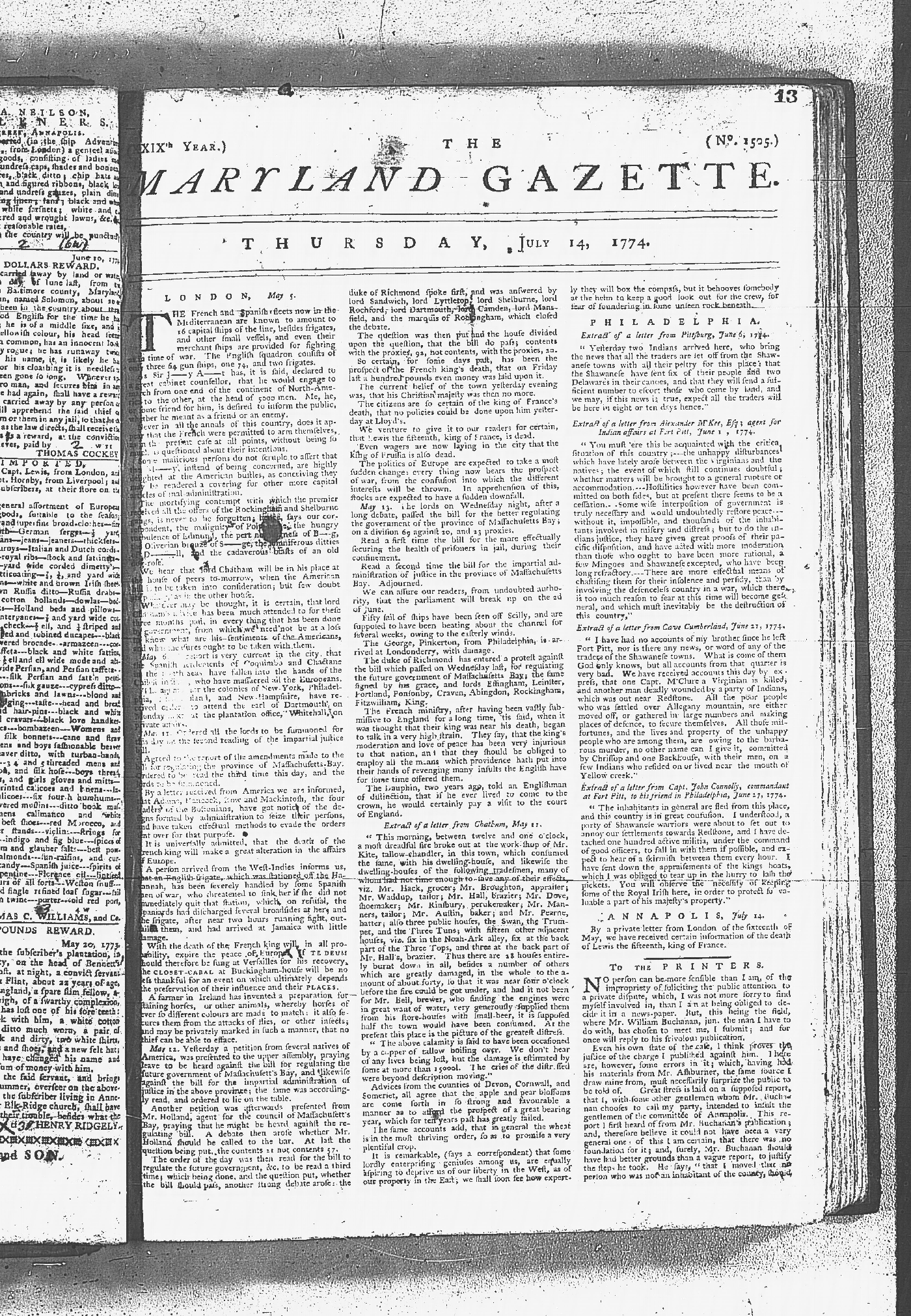Maryland Gazette Collection MSA SC 2731 January 9, 1772 - September 10, 1779 M 1282 A Publication of the Archives of Maryland Online Image 646 Enlarge and print image (5M) |