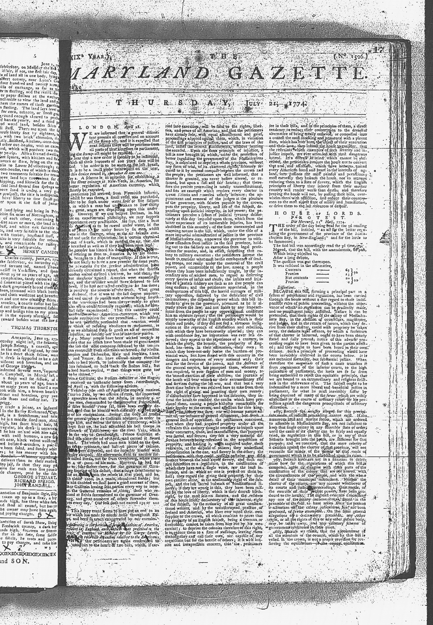 Maryland Gazette Collection MSA SC 2731 January 9, 1772 - September 10, 1779 M 1282 A Publication of the Archives of Maryland Online Image 652 Enlarge and print image (6M) |