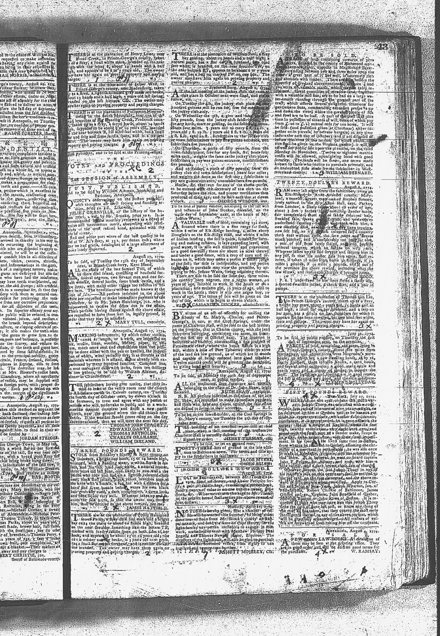 Maryland Gazette Collection MSA SC 2731 January 9, 1772 - September 10, 1779 M 1282 A Publication of the Archives of Maryland Online Image 682 Enlarge and print image (7M) |