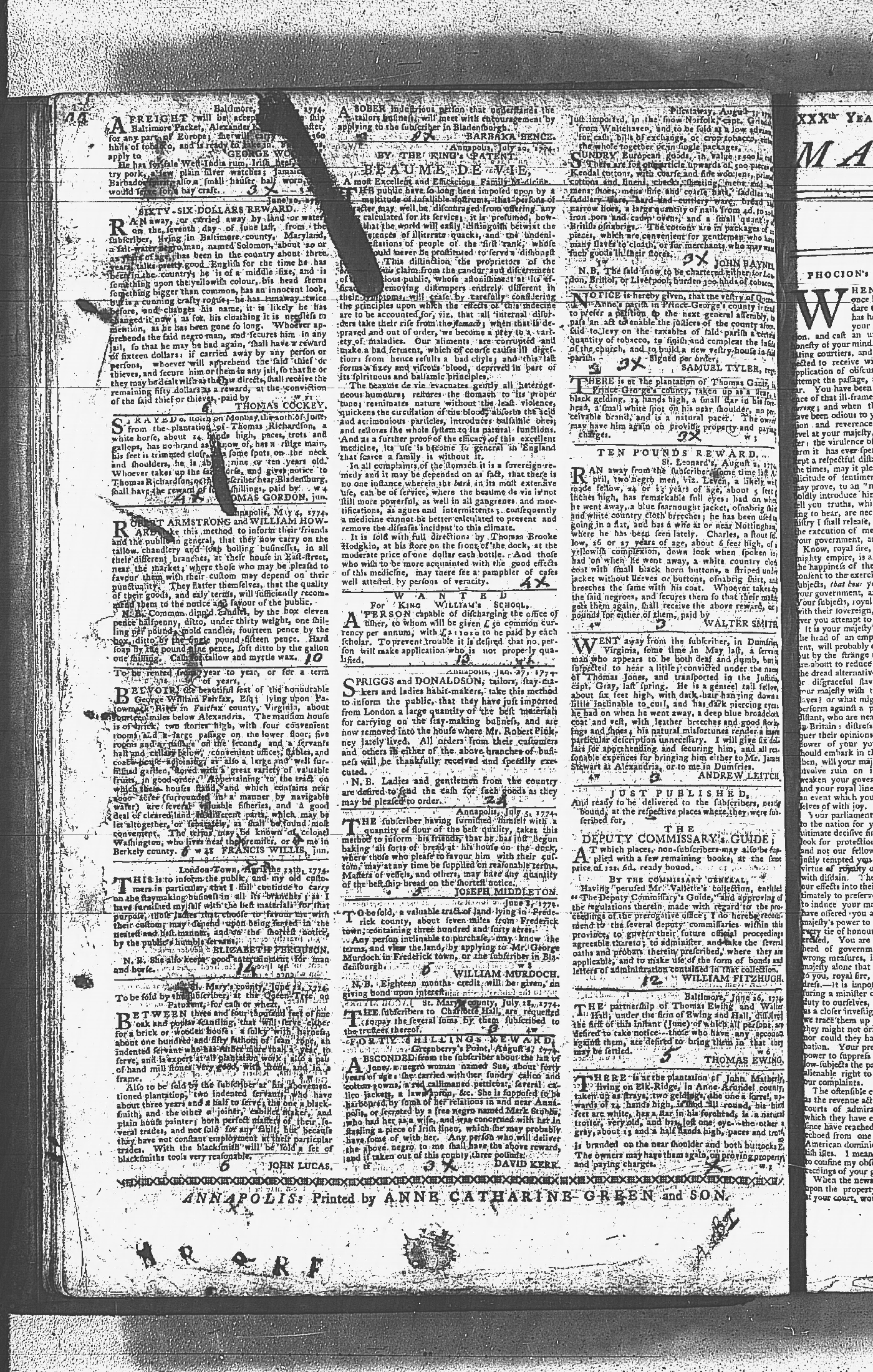 Maryland Gazette Collection MSA SC 2731 January 9, 1772 - September 10, 1779 M 1282 A Publication of the Archives of Maryland Online Image 683 Enlarge and print image (6M) |