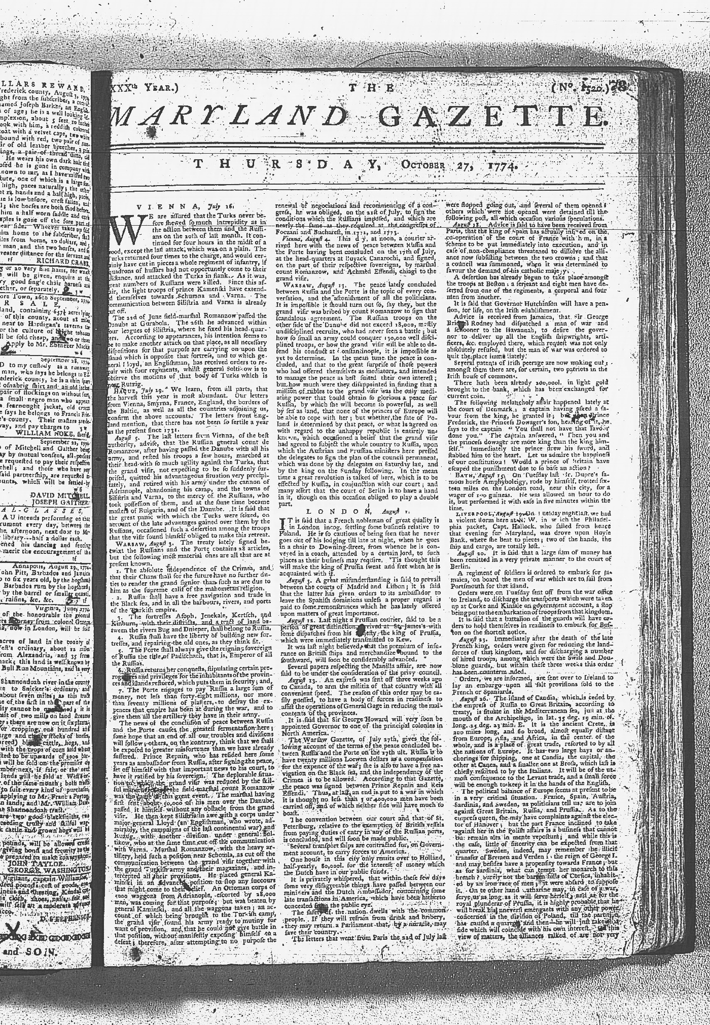 Maryland Gazette Collection MSA SC 2731 January 9, 1772 - September 10, 1779 M 1282 A Publication of the Archives of Maryland Online Image 716 Enlarge and print image (7M) |