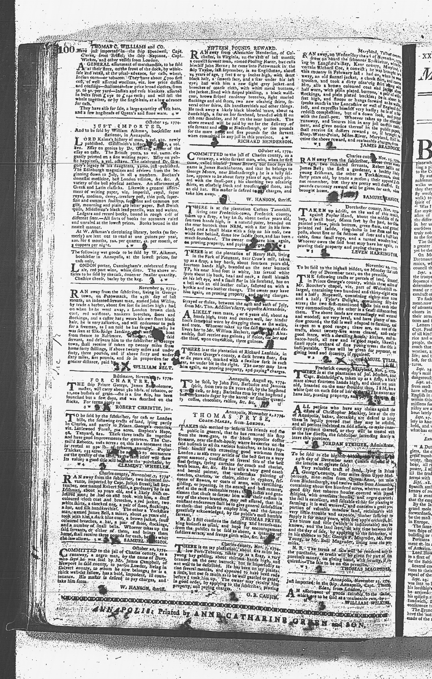 Maryland Gazette Collection MSA SC 2731 January 9, 1772 - September 10, 1779 M 1282 A Publication of the Archives of Maryland Online Image 749 Enlarge and print image (5M) |